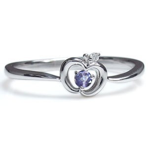12月誕生石タンザナイトを一粒使用した、シルバー製の林檎(りんご)モチーフの(指輪)です。