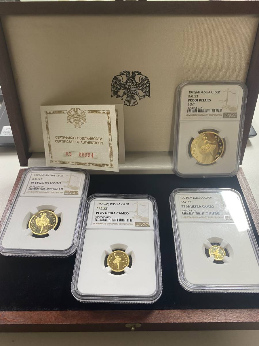 【レア金貨/ロシアバレイ金貨/4セット】1993年 ロシア発行 金貨4セット COA付 箱付き とても美しく人気のデザイン金貨 希少 カードOK