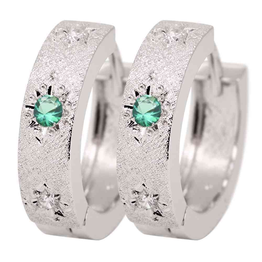 5月誕生石エメラルドを使用したプラチナ製の、レディースフープピアスです。