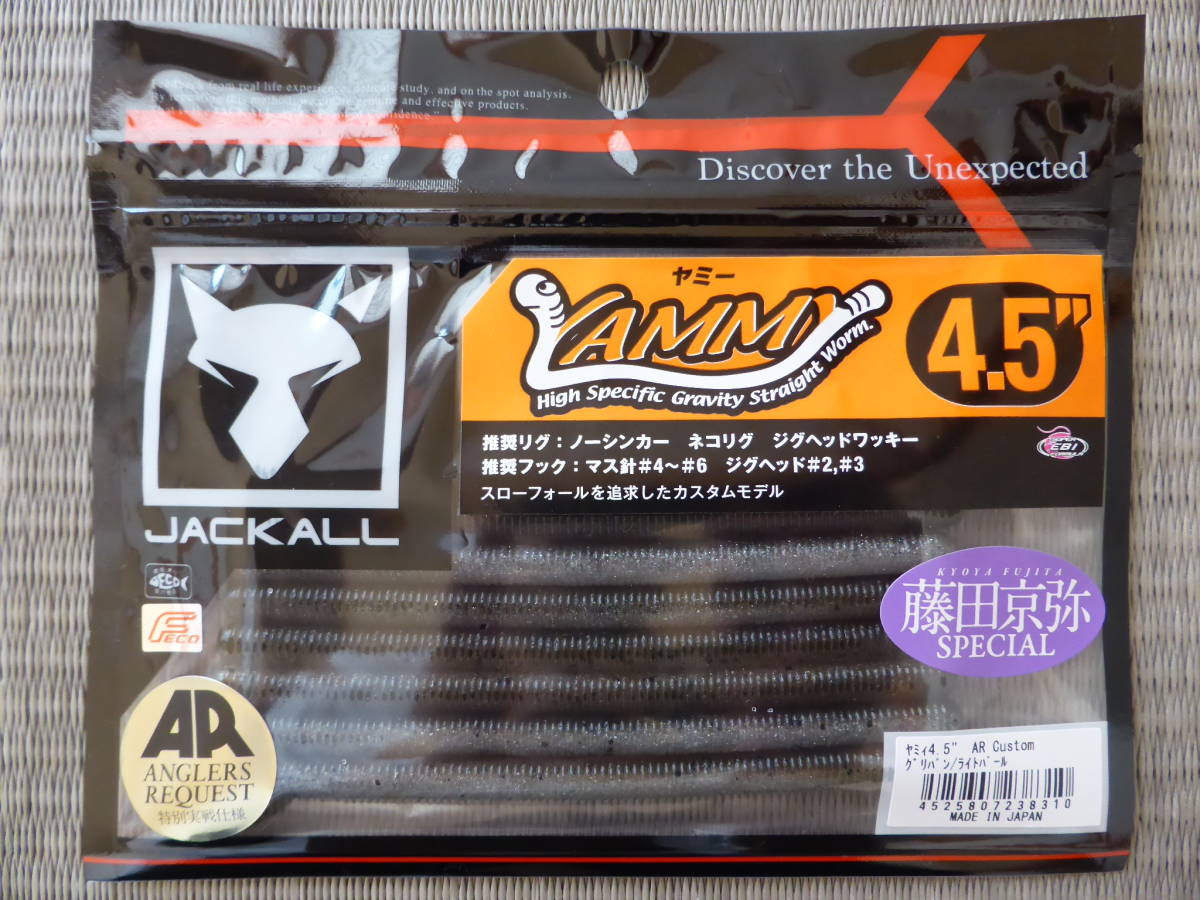 勝ちにつながる1本を“獲る”ために 藤田京弥プロがこだわりがつまった、ヤミィ4.5 AR CUSTOM 最も破壊力のある、ストレートワーム_ヤミー そのヤミーを藤田京弥プロがさらなるチューニングをしたモデルです。 ここ一番での食わせパワーは別格! スローフォール特化 ヤミィの最大の特徴であるノーシンカーワッキーリグにおけるシミーフォールをより長く見せることができるようにスローフォールに調整し、「喰わせの間」を設けました。 冬場の貴重な一本をこの超スローフォールで獲ってください! カバーネコリグ対応 マテリアルを変更したことで、針持が向上しカバーネコリグにも対応。 ストラクチャーに潜むバスにもアグレッシブにアプローチが可能です。 通常版のYammy500と比較し、塩比重を少なくして、よりスローフォールになる設定。 硬めのマテリアルは針持ちが良く、“振り抜く”ことができるため、サイトフィッシングのアドバンテージとなるロングキャストが可能。 アングラーズリクエストとは さらなる1本を追求するトーナメンターやロコアングラーの要望を製品化したシリーズ。 ◆カラー:グリパンライトパール_2トーンカラー ◆長さ:4.5インチ_約114mm ◆重さ:約3.9g ◆個数:8本 新品です。 神経質な方は入札をご遠慮ください。 同時出品も併せてご覧ください。 宜しくお願い致します。 | ||||