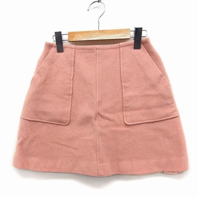 レイビームス Ray Beams 台形 フレア スカート ミニ 無地 ウール メルトン 0 ピンク /FT27 レディース