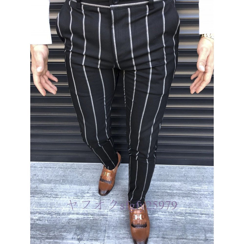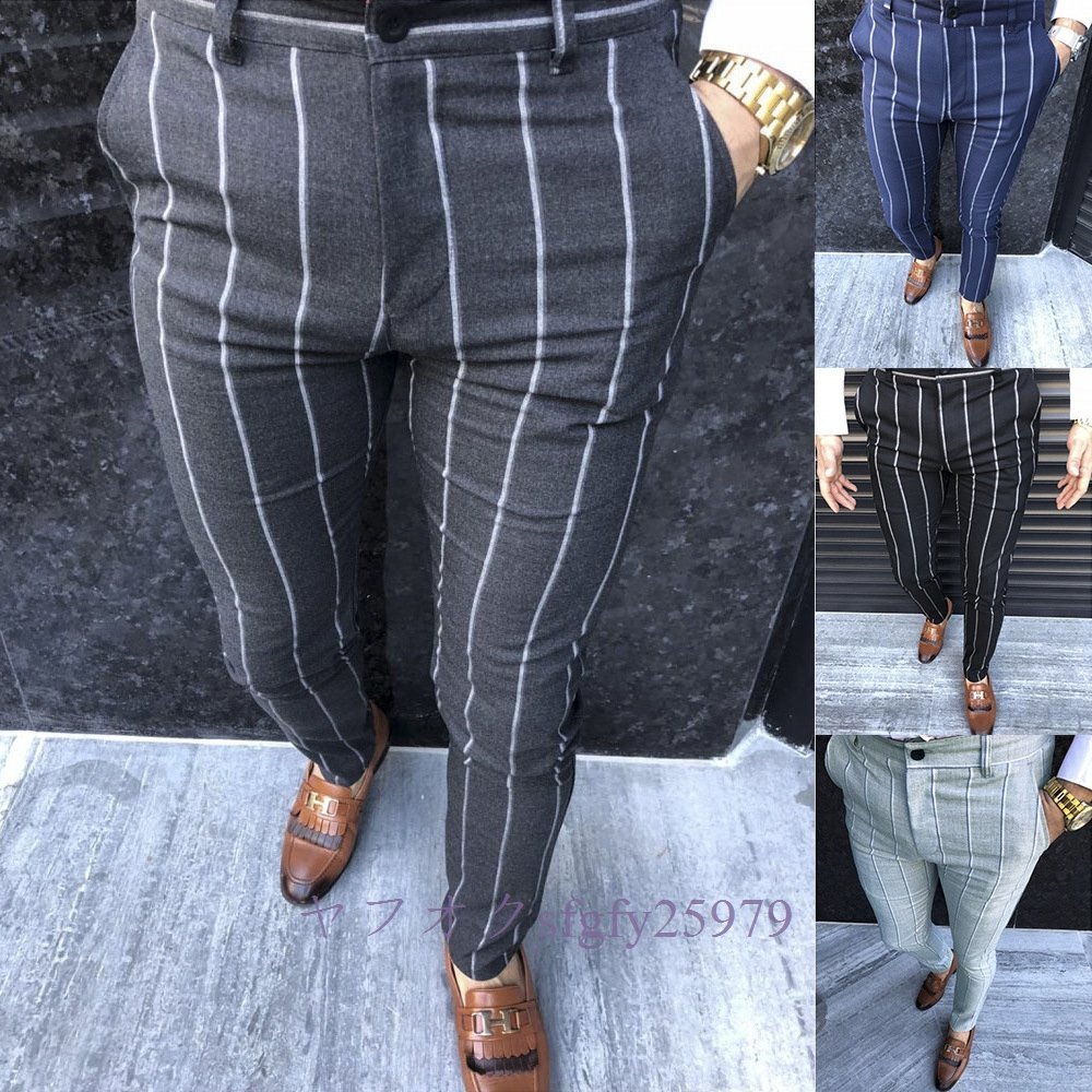 P799新品スキニーパンツ メンズ チノパン スリムパンツ ボトムスストレッチパンジョガーパンツスウェットパンツ ストライプ柄 M~3XL