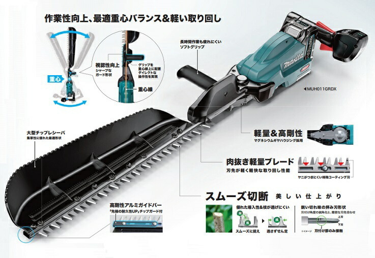 マキタ製の40Vmax充電式ヘッジトリマのMUH010GRDXです。