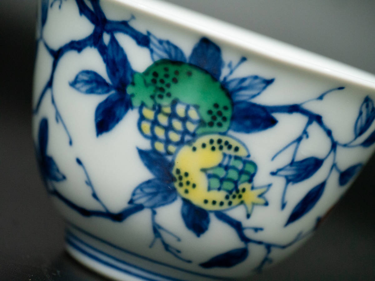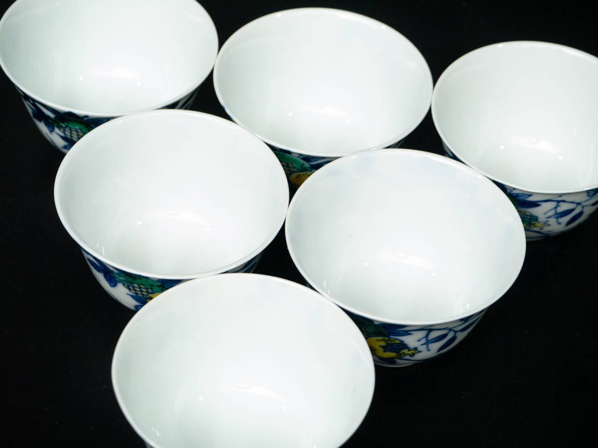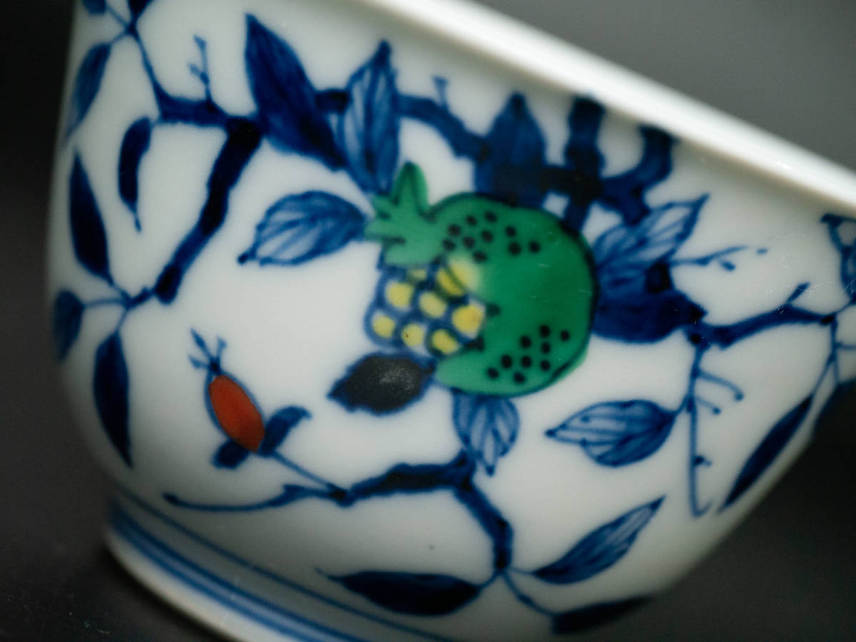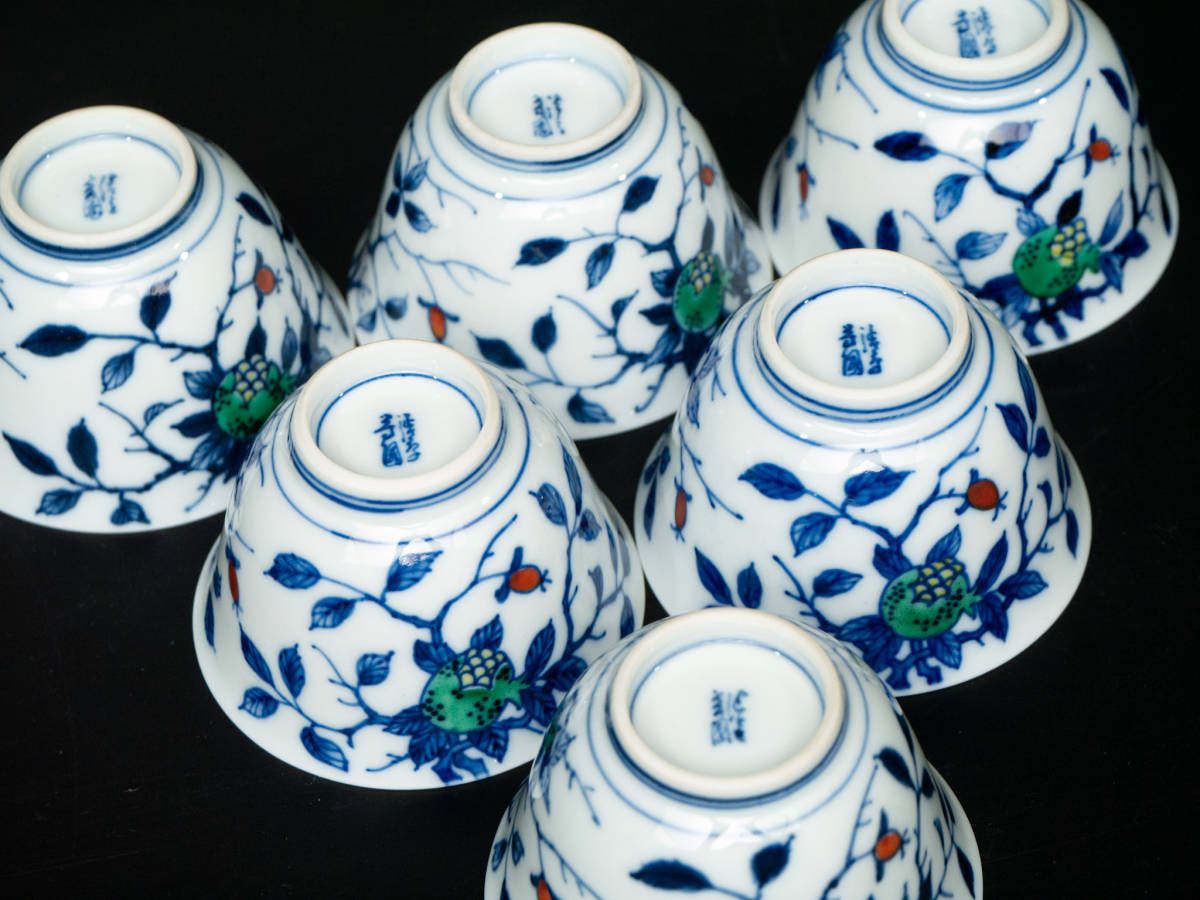 【値下げ交渉有り】 渋草 芳國舎 芳国舎 造 染赤 寿果文 柘榴 湯呑 茶器 六客 共箱