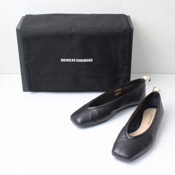 NICHOLAS KIRKWOOD ニコラスカークウッド Delfi レザーバレリーナシューズ 35/ブラック 22cm【2400013092500】