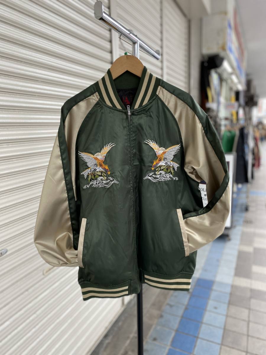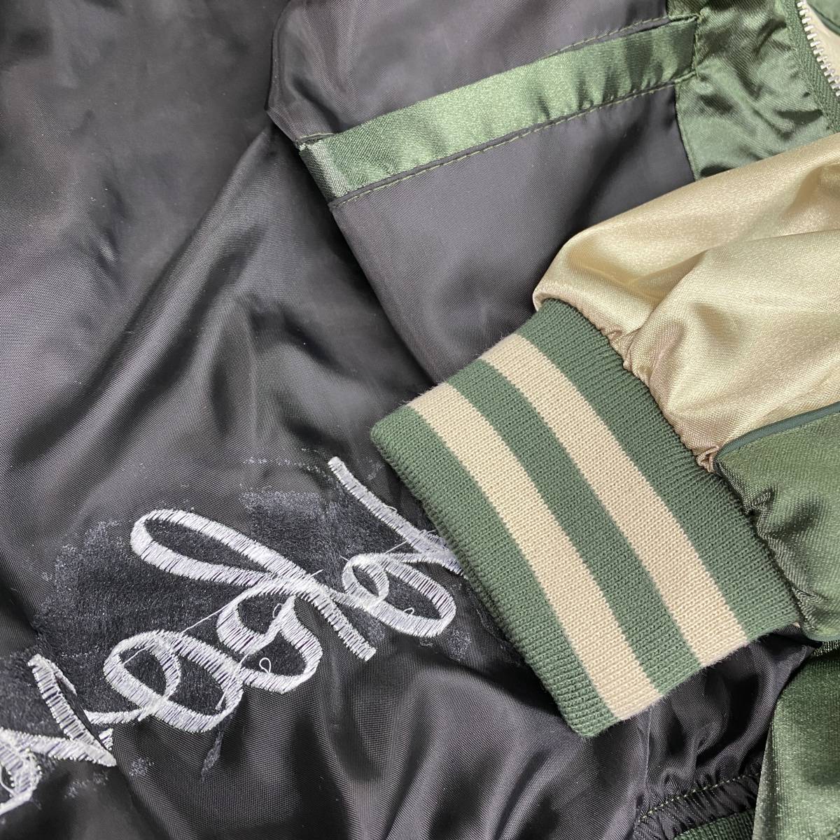 スカジャン 【3L】 Yokosuka刺繍入り 横須賀発祥 SUKAJAN サテン地 刺繍 イーグル 鷹 内ポケットあり 緑 グリーン ゴールド 新品