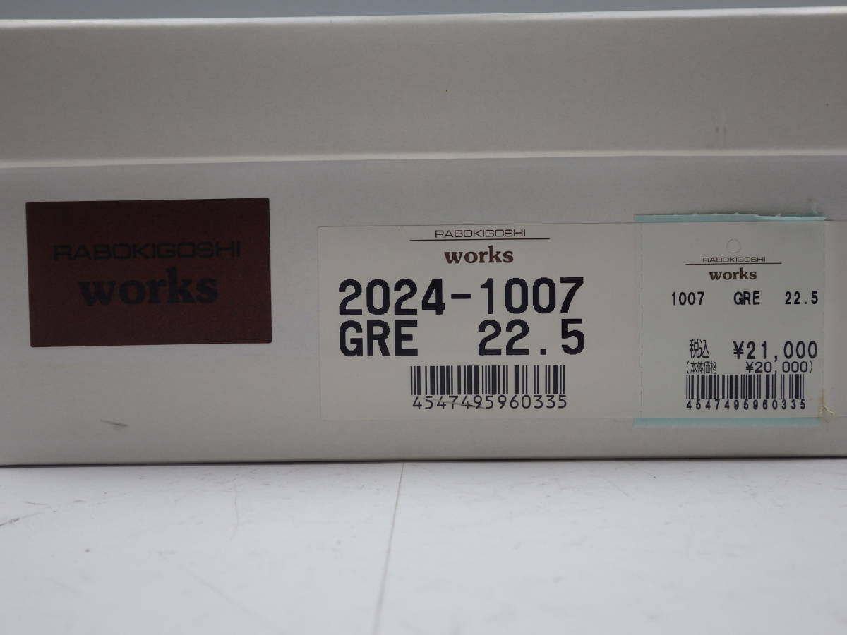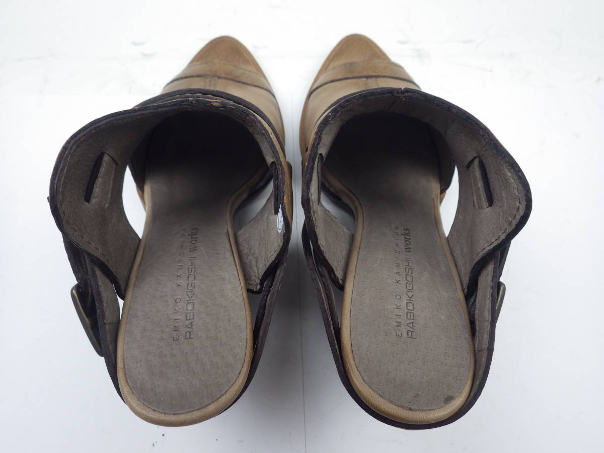 ★商品管理番号 146-3416 ★メーカー ラボキゴシ ★商品名 works ワークス デザインサンダル ★型番 2024-1007 ★カラー GRE ★サイズ 22.5㎝ メイン素材: 牛革 ヒールの高さ: 6.5 cm 原産国: 日本 ソール素材または裏地: 合成底 ★商品状態 現状渡し商品となります。 未使用・保管品に付きスレ・キズ等が有ります。 新品ではございませんので神経質な方は入札をお断りいたします。 ※出品依頼商品に付き、詳しい質問等のお答え出来ない場合がございますので、ご了承下さい。 ※記入ミス記入漏れは現物優先でお願いします。 ★商品について 画像に写ってる物が全てです。 外箱は経年変化にてスレ・キズ等があります。 ※撮影時の照明やご使用のモニターなどにより商品が綺麗に写りすぎていたり、 実際の色と多少異なる場合がございますのでご了承のほど、よろしくお願い致します。 評価後の返品&返金は一切受け付けません。予めご了承ください。 ★発送方法 手渡し大歓迎です。 送料無料 ※領収書を希望される方は、落札後取引メッセージにご連絡下さい。 ※落札後、評価不要の場合は評価は入れない様にお願い致します。 ※当社の詳しい所在地はこちらのホー ムページをご覧下さい。 | ||||
