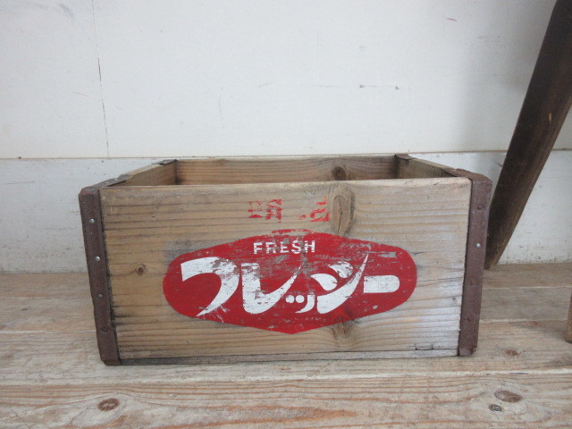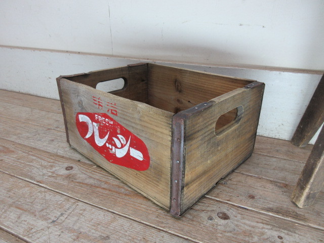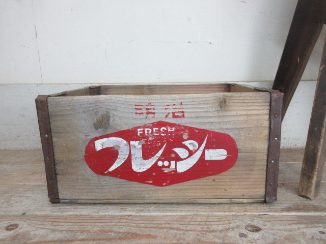 古い明治フレッシーの木箱P963   アンティークウッドボックス木製収納ボックスアメリカ雑貨アドバタイジングインダストリアル
