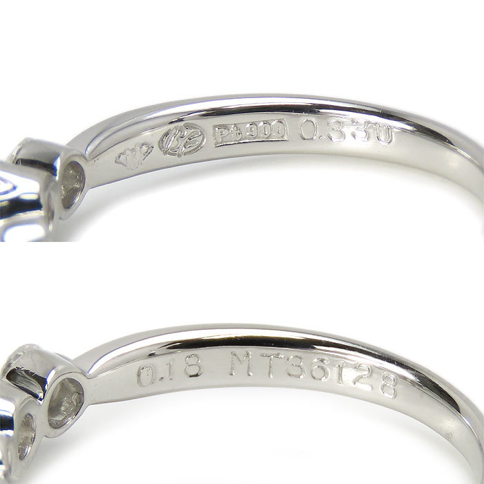 素材 | Pt900 中央D0.33ct(カラー:F クラリティ:VS2 カット:Excellent) 脇石D0.18ct | ||