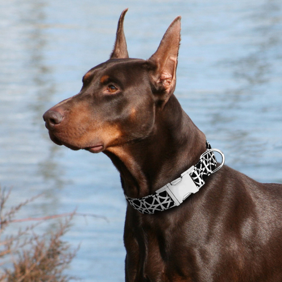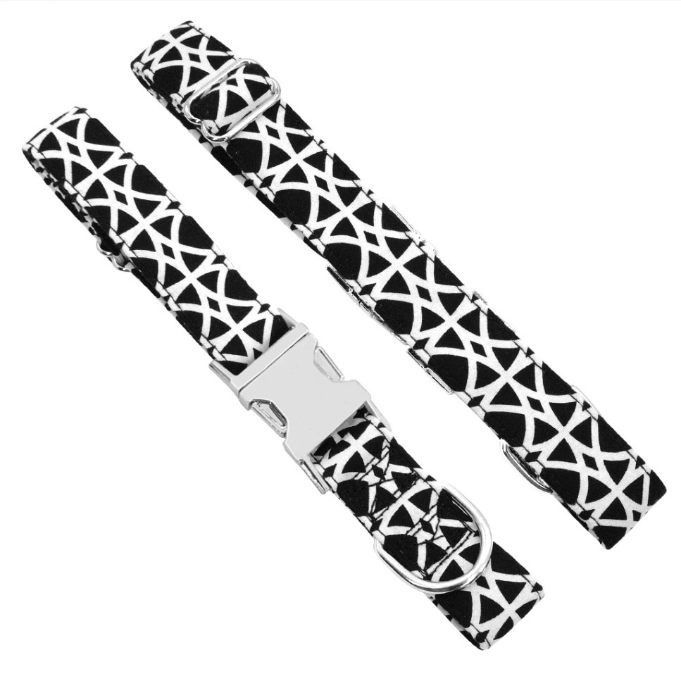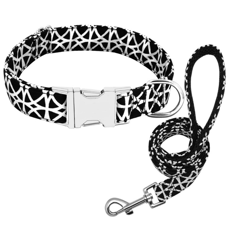 かわいい 犬用 猫用首輪 リード セット サイズM おしゃれ♪ 白黒柄 0001-02-m