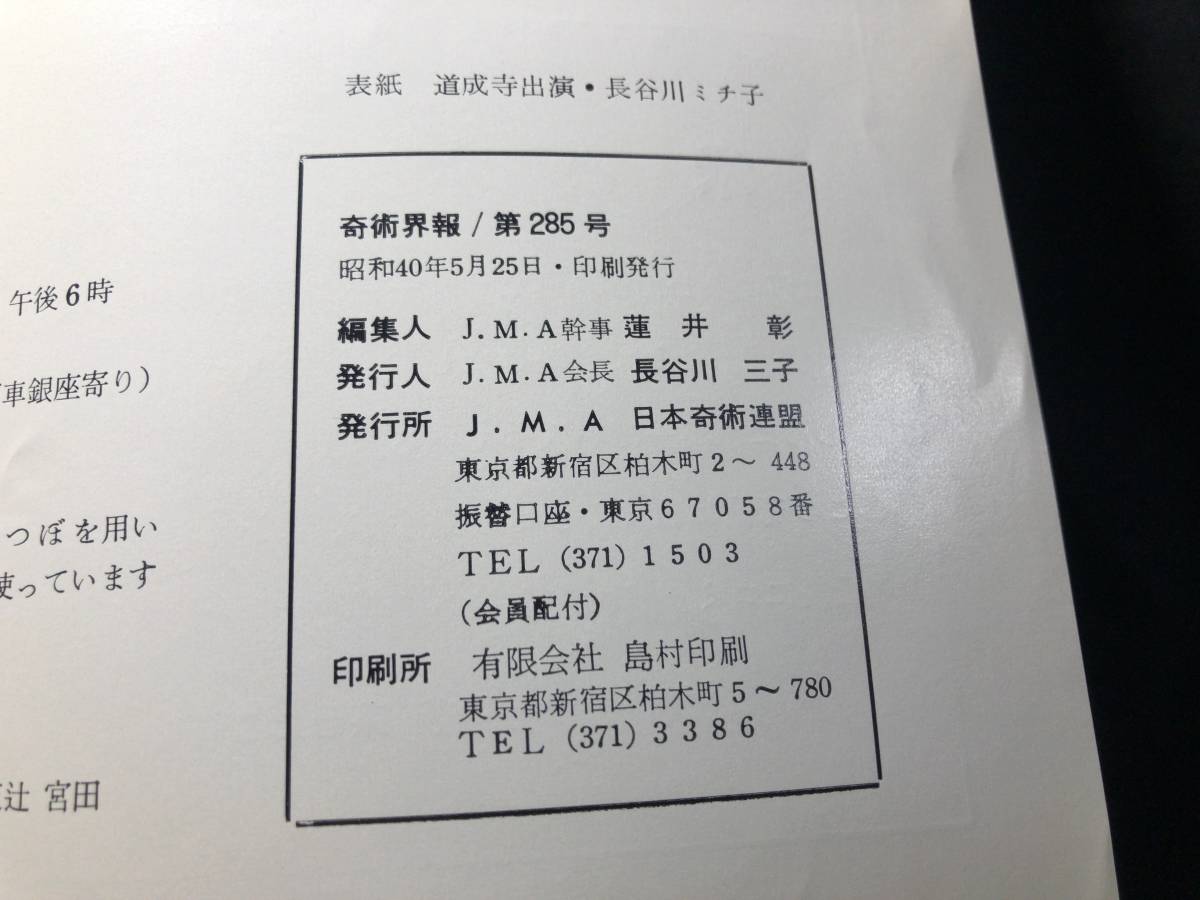 【奇術界報105】『285号 昭和40年5月』●長谷川三子●全8P●検)手品/マジック/コイン/トランプ/シルク/解説書/JMA