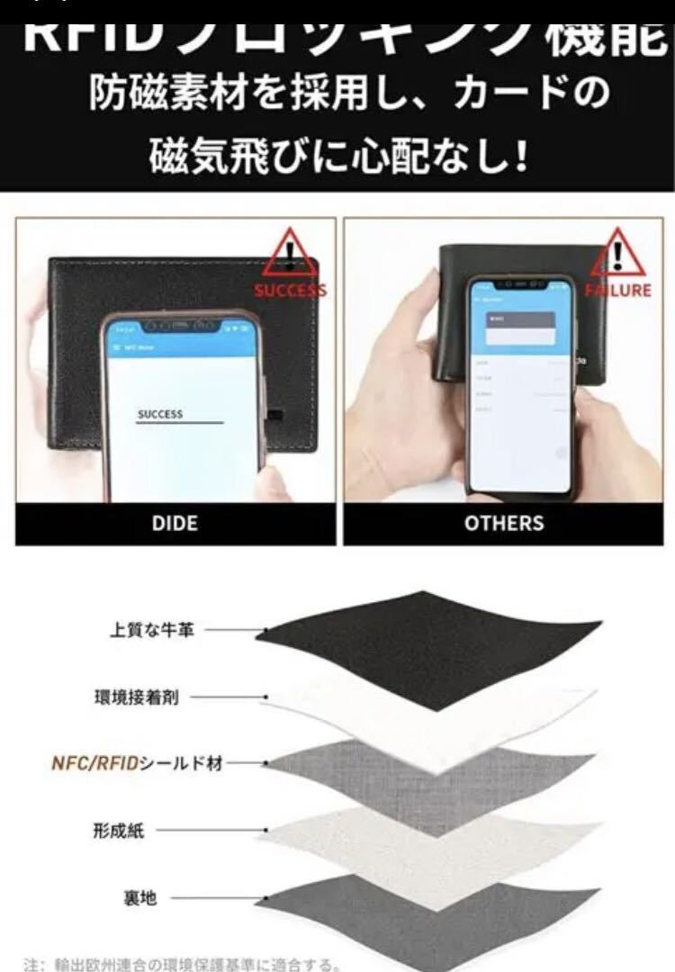 【サイズ】 11 × 8.0 × 1.5 cm コンパクトでスリムな二つ折りで、9枚収納可能なのに薄型。 薄さにこだわって設計したので、9枚もカードが入るスペースがあるのに、 全てのスペースにカードを入れてもその薄さはほとんど変わりません。スーツの胸ポケットに入れても、 デニムのヒップポケットに入れても、かさばることなく邪魔に感じません。