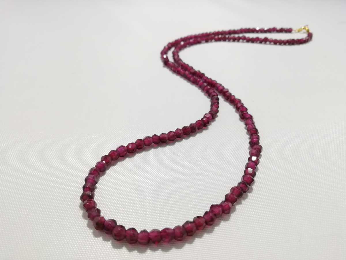 天然ロ−ズカットガーネットシンプルデザインロングネックレス