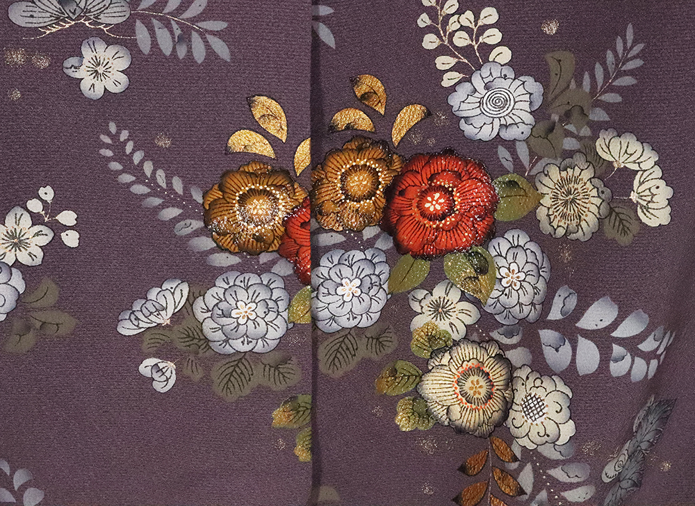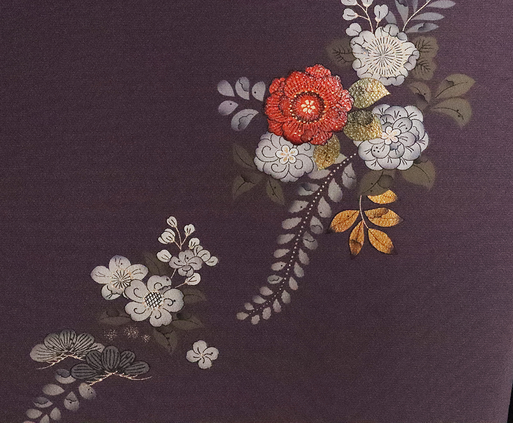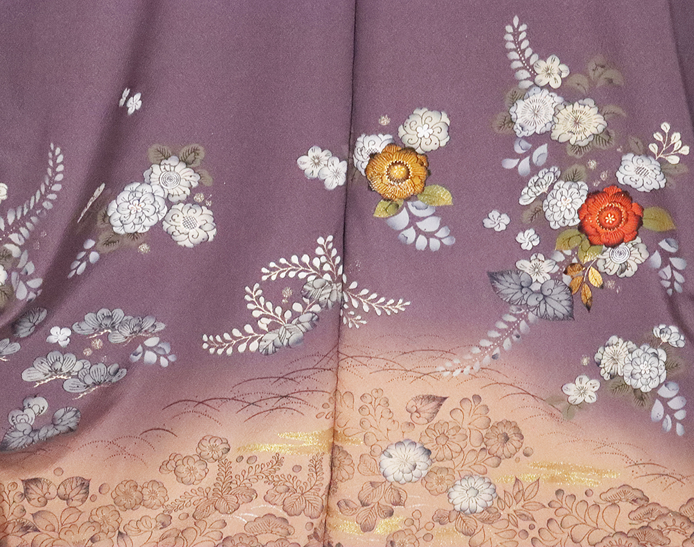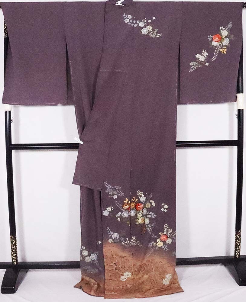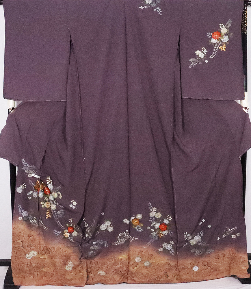 | 色・柄 | 仮絵羽 訪問着 丹後縮緬地 赤紫・茶色ぼかし地辻が花 一部刺しゅう 広襟 八掛け付き (写真では上手く色が出ない場合があります。ご了承下さい) |