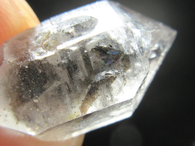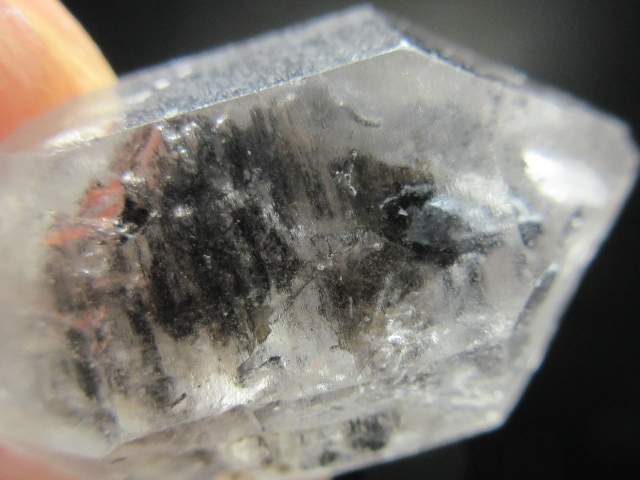 ご覧のように主に両端がポイント(ダブルターミネーター) となっており、内部に黒い内包物(炭素やマンガンと言われる) や太古の水を湛えていることが多い、大変に魅力的な水晶です。