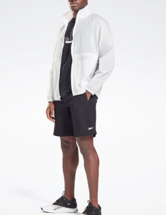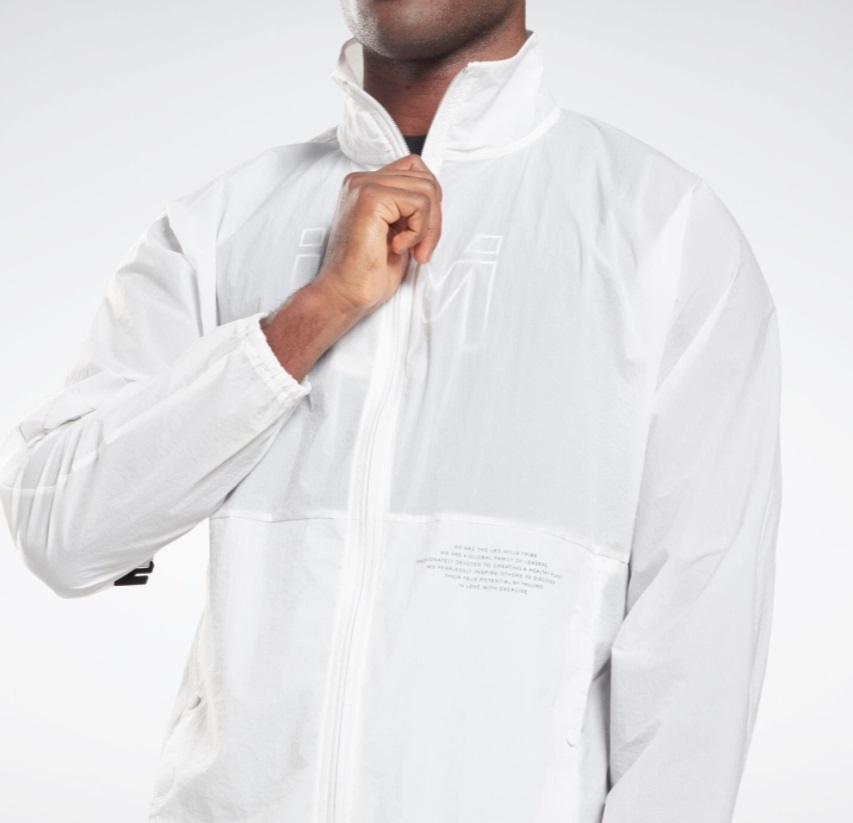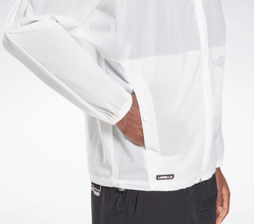ワークアウトの途中で小雨に降られても大丈夫。LES MILLSファンのためにデザインされたこのリーボック トラックジャケットは撥水加工を施しているので、身体をドライに保つ。バンジーコード付きの裾は、天候に応じてルーズに緩めたり絞ったりしてカバー力を調節可能。クリンクル加工が施された素材が運動中にスタイルを引き立てる。ポケットにあしらったLES MILLSのモットーを表現したグラフィックが、LES MILLS精神に敬意を表している。