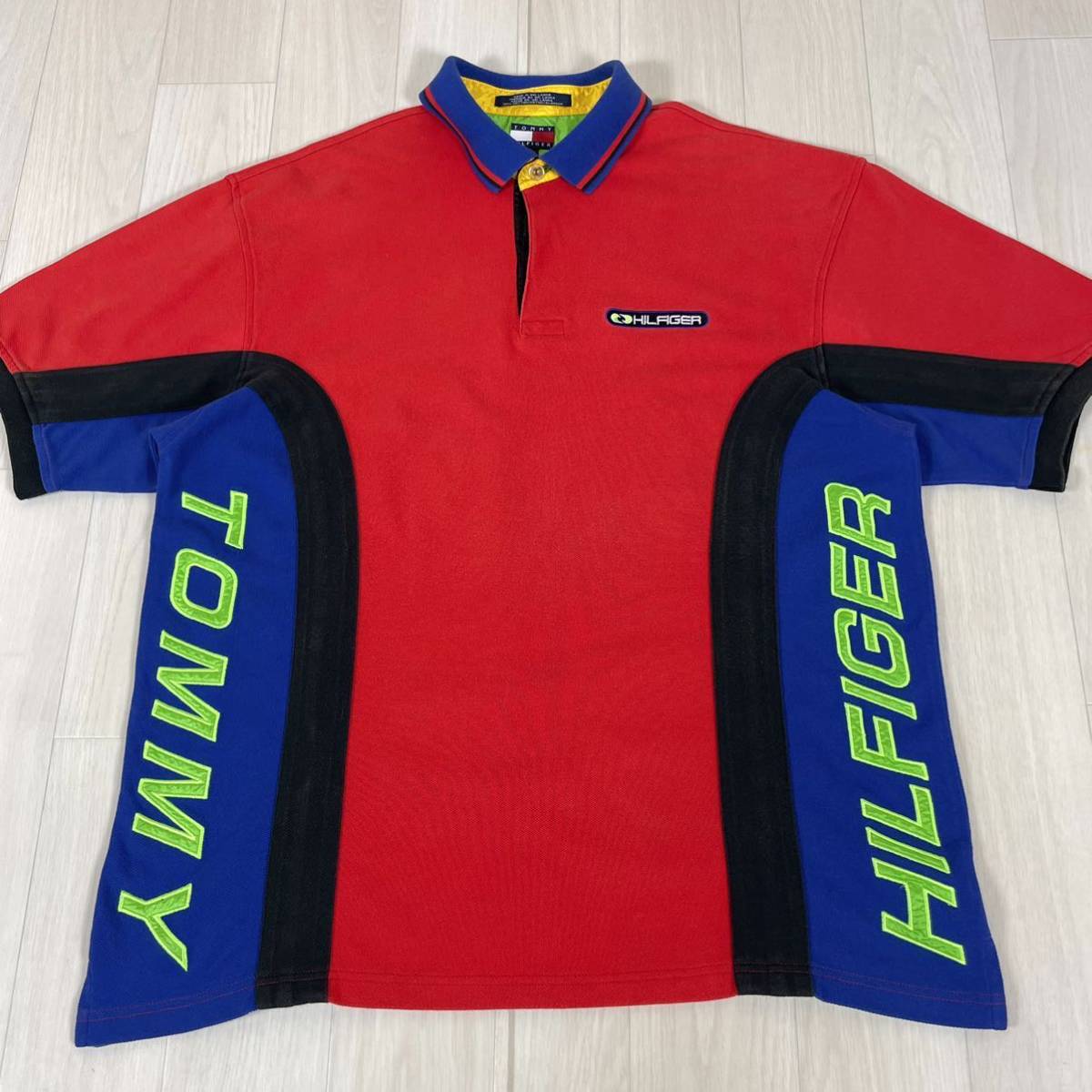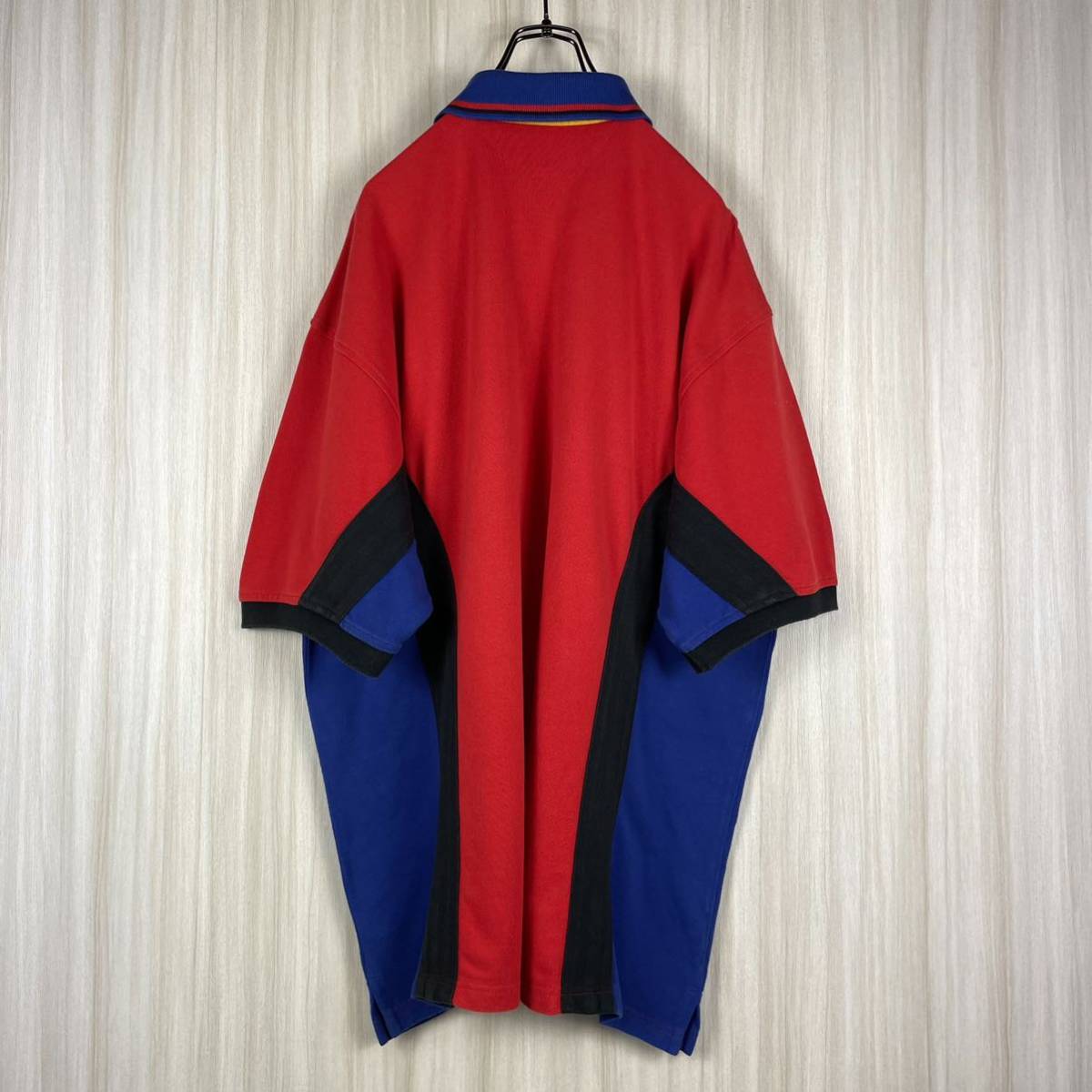 アメカジ ワンポイント オールドタグ 切替デザイン マルチカラー サイドスリット ビッグシルエット オーバーサイズ ラガーシャツ ポロシャツ レアアイテム