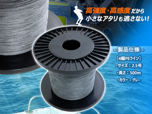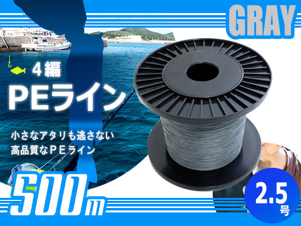 500m PEライン 2.5号 灰色 グレー 4編 投げ釣り 船釣り エギング ジギング タイラバ 船 深海 ルアー シーバス 釣り糸 リール