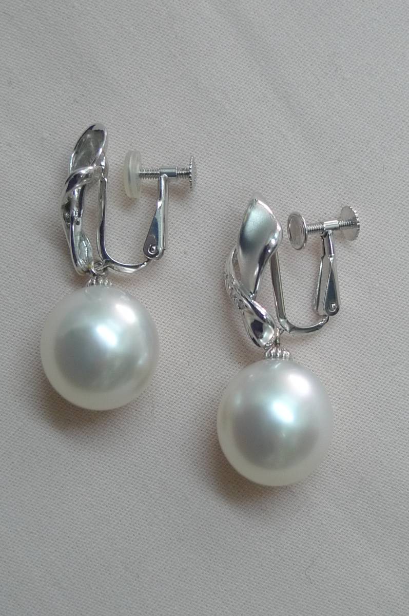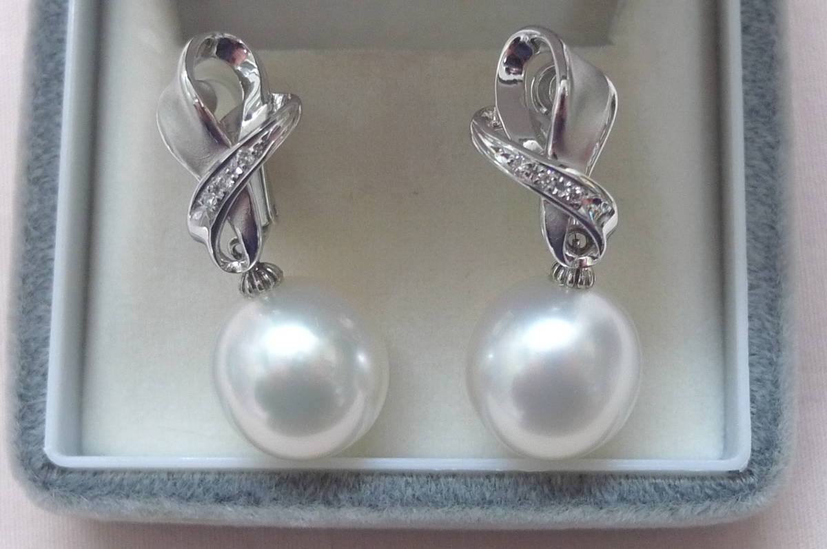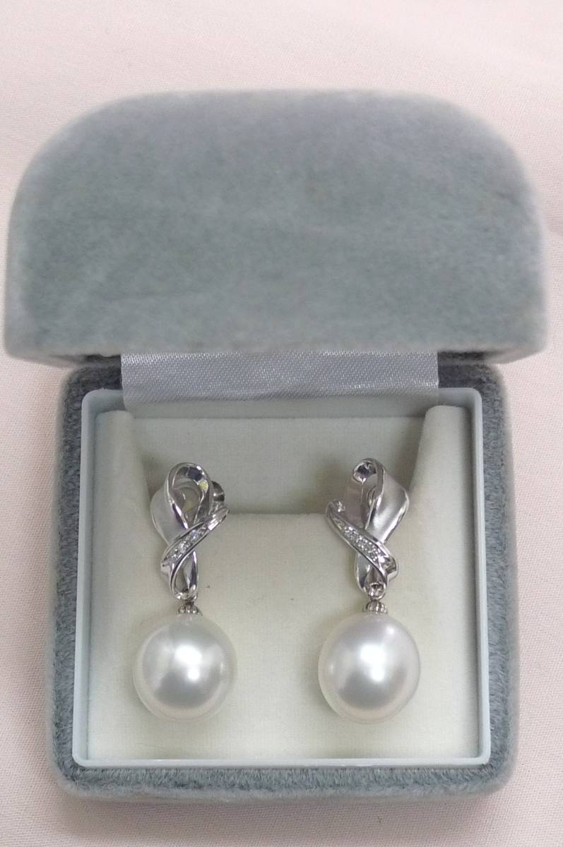 | 【中古品】14㎜玉パールイヤリング 0.03ct ダイヤ Pt900 K14WG | ◇商品説明◇ |