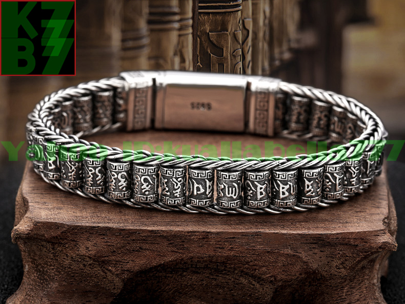 【永久豪華】メンズ シルバー ブレスレット『純銀六字真言』覇気 男性 彼氏 記念日 誕生日 プレゼント アクセサリー★長20cm 重56g C96