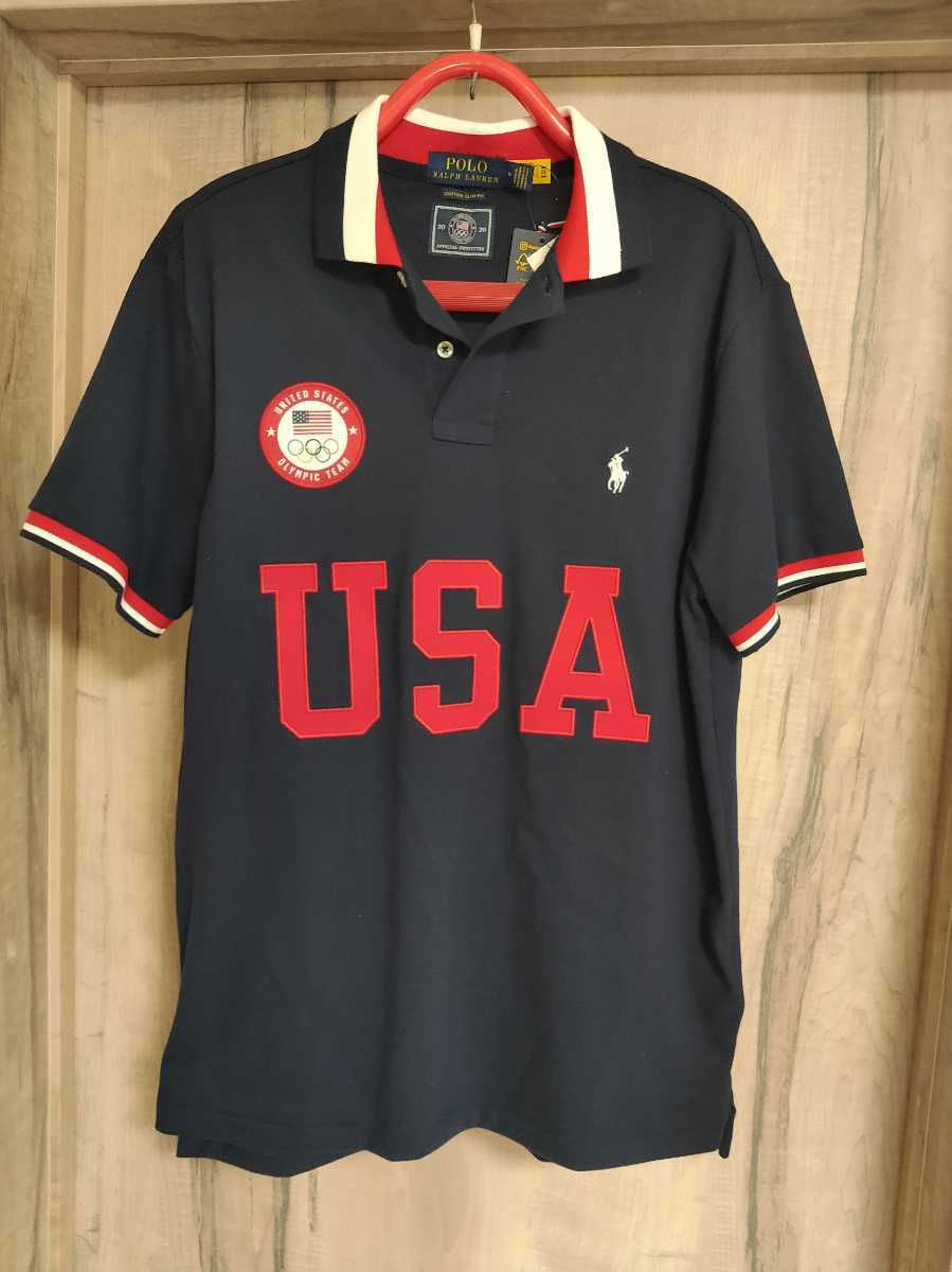ラルフローレンのポロシャツです。東京オリンピックのアメリカ代表モデルです。素材は100%コットンの鹿の子地です