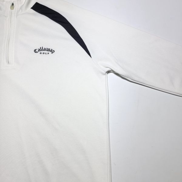 Callaway キャロウェイ 通年 ロゴ刺繍 長袖 カットソー ハーフジップ シャツ Mサイズ メンズ 白 ゴルフ 速乾