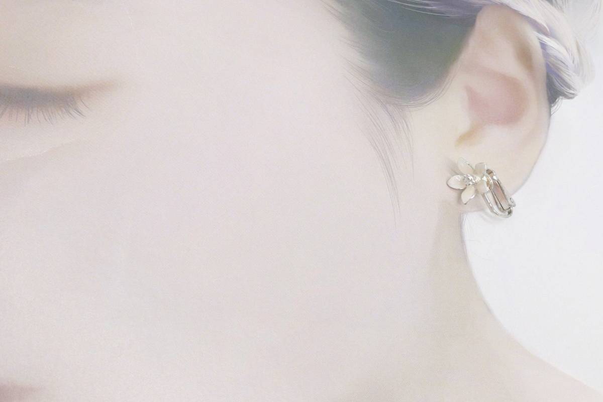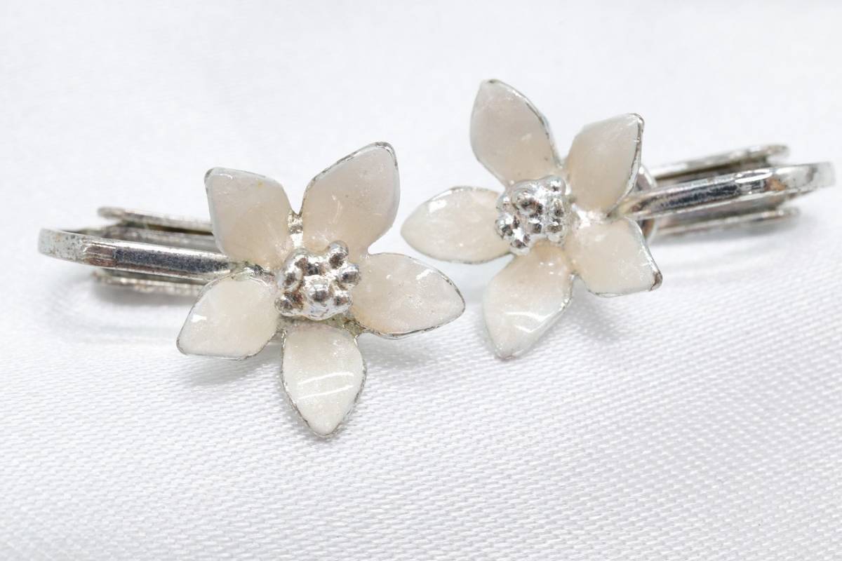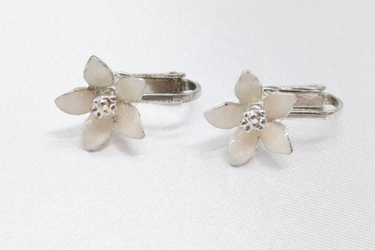 【RA871】フラワー 1輪 花 モチーフ イヤリング ホワイト【送料全国一律198円】