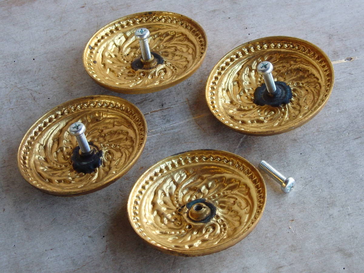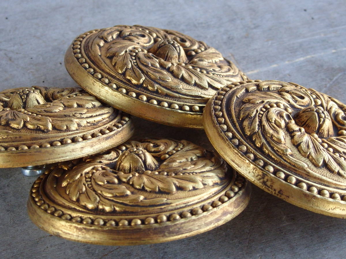 フランスアンティーク 4個セット 家具 パーツ ブロンズ 青銅 1930年 装飾 デコ 蚤の市 ブロカント 飾り ゴールド 仏国 t