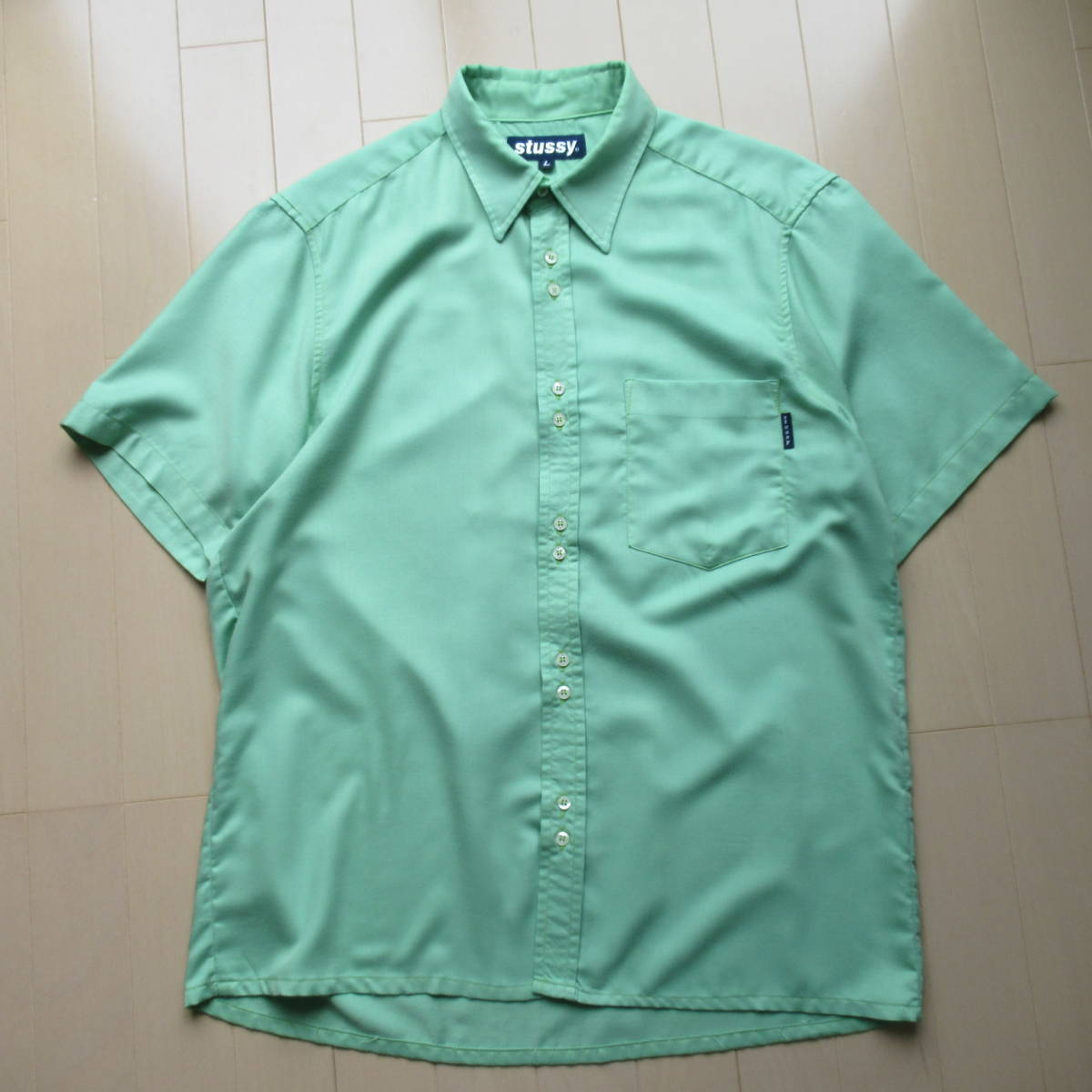★即決送込★90s 希少 レア色 ギャルソンシャツ クレイジーボタン STUSSY oldstussy ステューシー オールド 半袖シャツ shirt m l xl