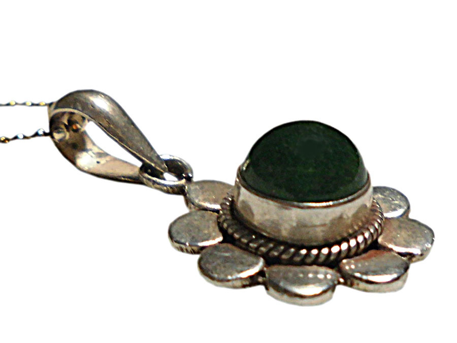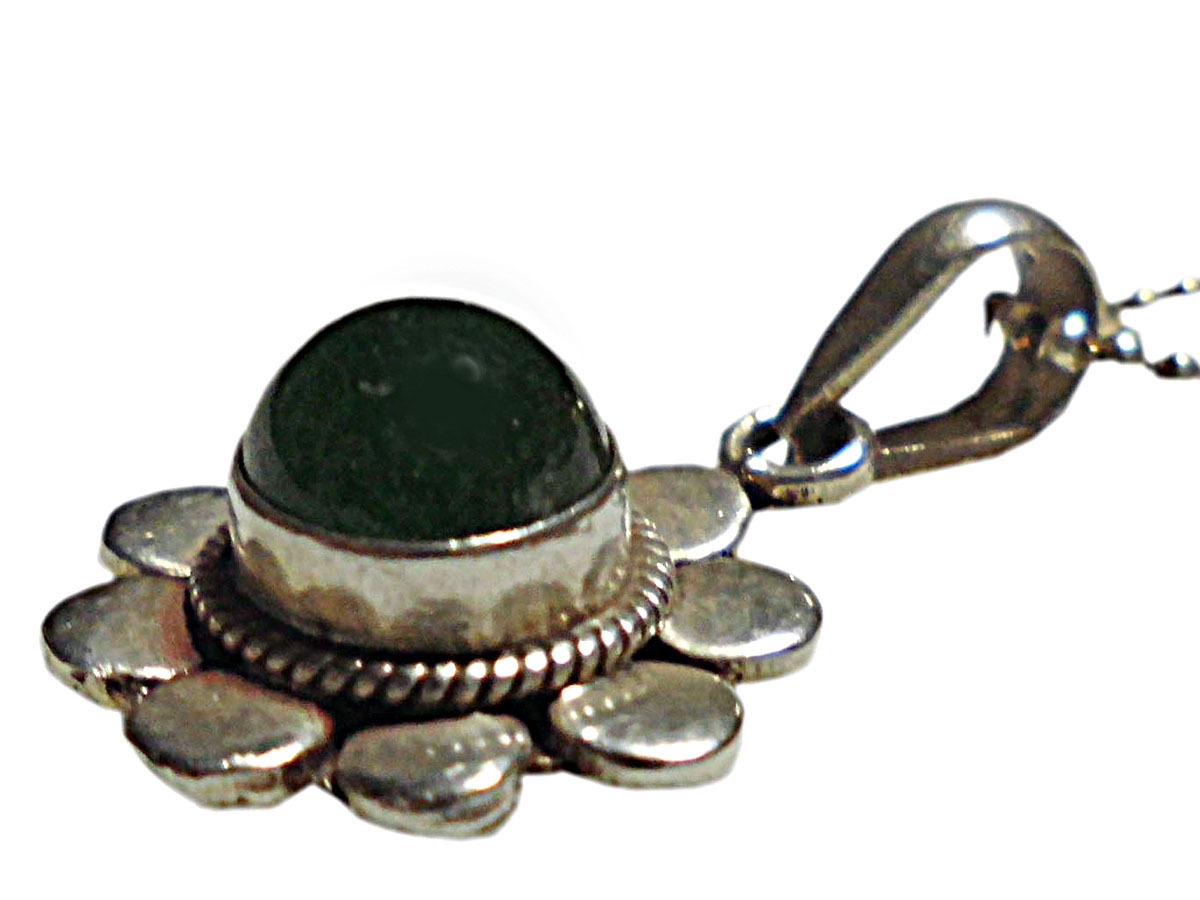 ■☆アジアン雑貨 ネパール銀職人 グリーンオニキス・プチネックレス(PUO-17)