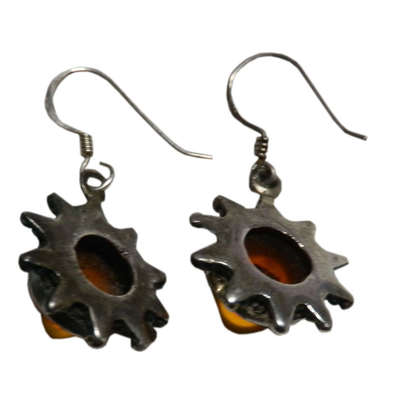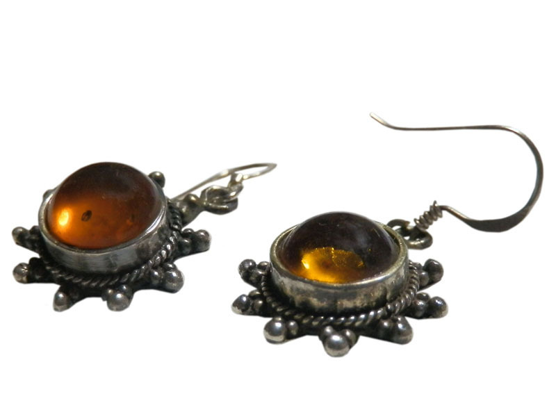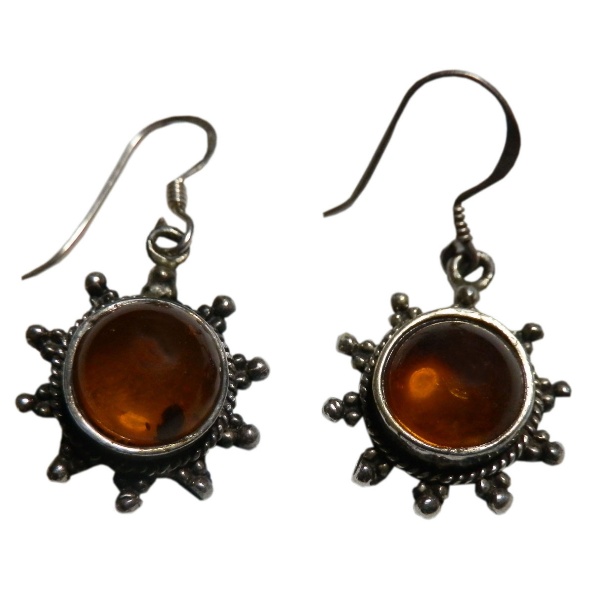 ■☆アジアン雑貨 タイ銀職人 琥珀(アンバー)・ピアス(P-20)