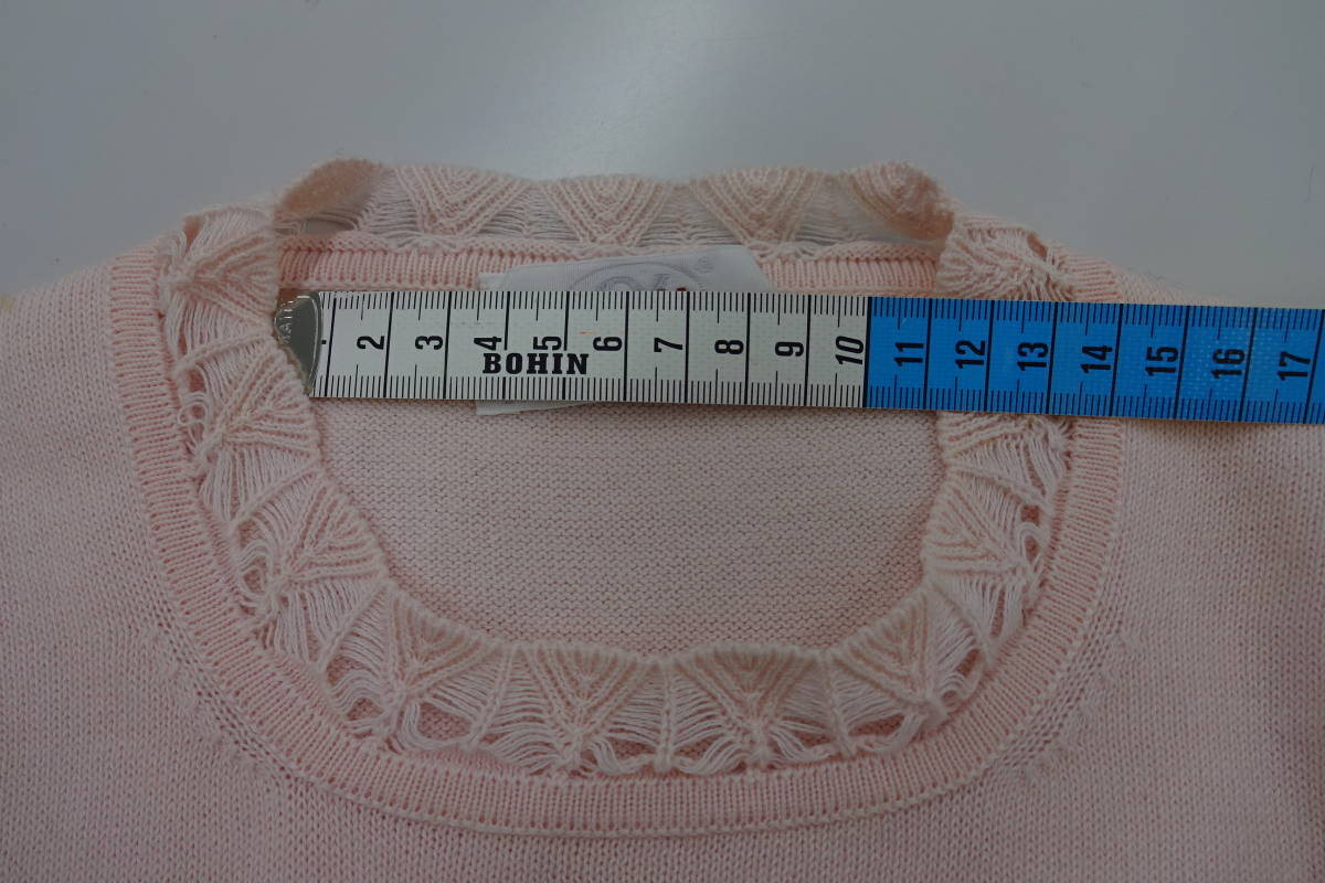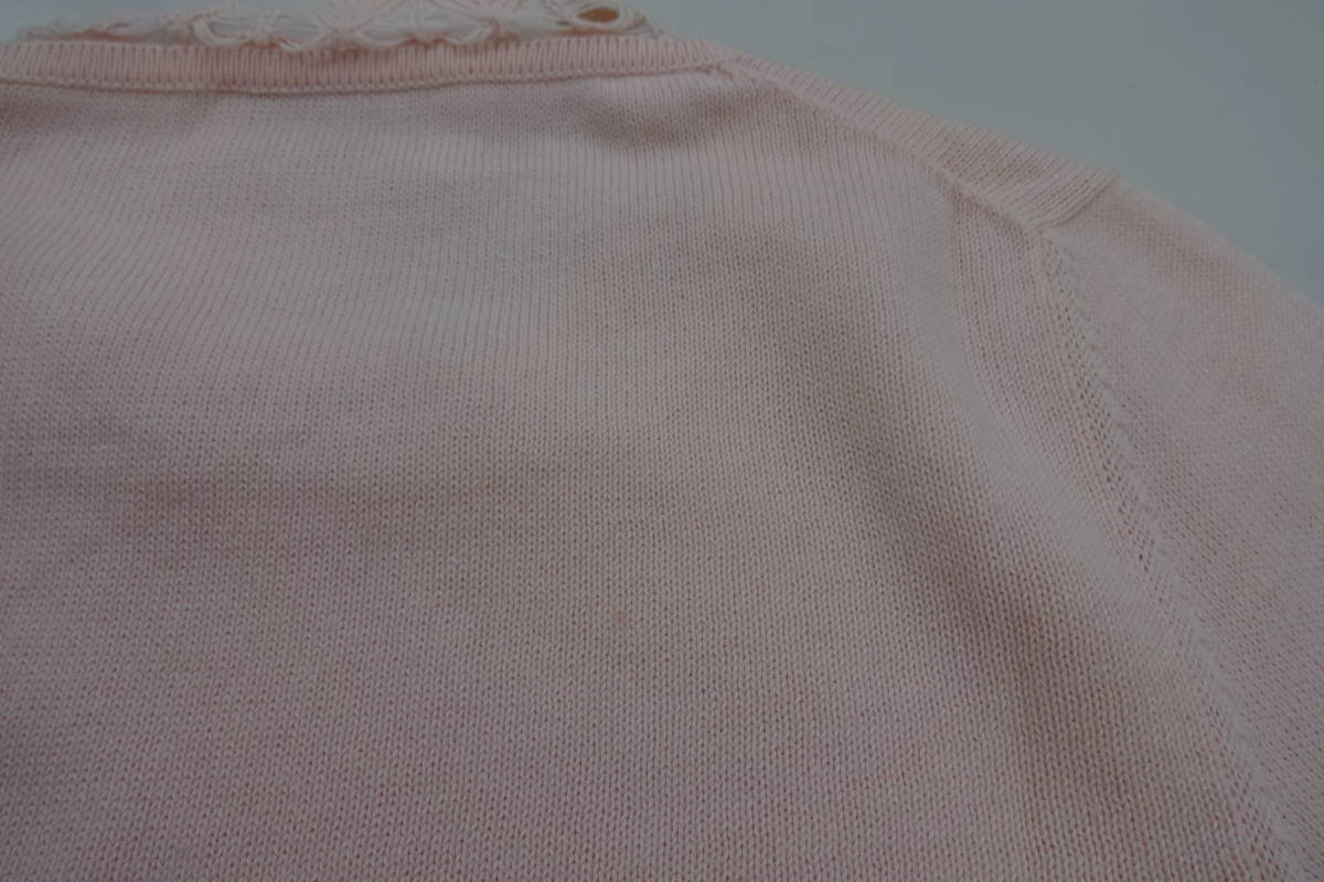 首元、袖口、裾はレース編み(素人なので、編みの名前はわかりません)が特徴の綺麗で可愛いセーターです。(画像3,4,5をご参照下さい。)