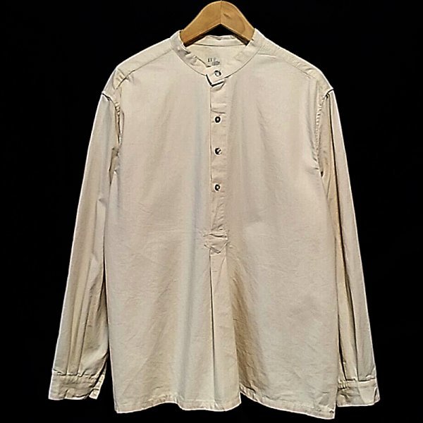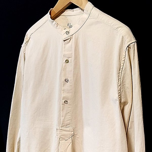 商品説明 | 50’s Pullover shirt from Bulgaria militaryのご紹介です。 ■detail■ サイズ:3 / 50'sレプリカ color:生成り色のごま塩 fabric:cotton 肩幅:約53.5cm 身幅:約66cm 着丈:約75cm 袖丈:約65cm(肩から袖先)/約53cm(脇下から袖先) 全て平置きにて計測 Bulgaria military/巻き縫い縫製/バンドカラー/シェルボタン/ヘンリーネック/プルオーバー/ごま塩コットン/50年代レプリカ 適度でワイドなゆとりとヘンリーネックがリラックス感を表現。 生地は肌触りが良いコシのある生成り色のごま塩コットンでオールシーズン着用できます。 バンドカラーにシェルボタン。 深めのヘンリーネックにプルオーバースタイルとどことなくノスタルジーなビンテージスタイル。 肩肘張らずザックリと着る楽しさを味わえます。 管理№mensfile50607080vintageunionwaredeadstockclutchmilitarysurvivalightningoverseapcannonragged |
