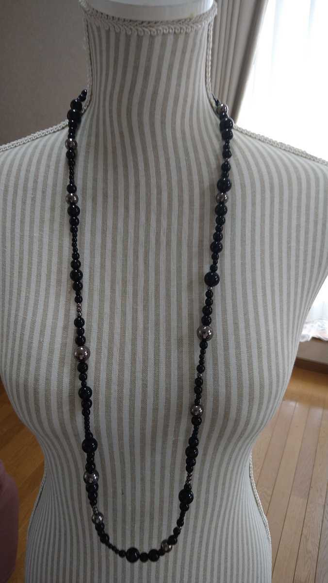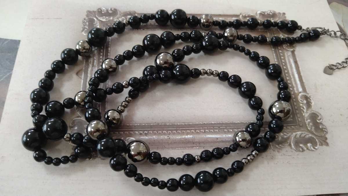 黒×メタルグレーカラービーズのネックレスです