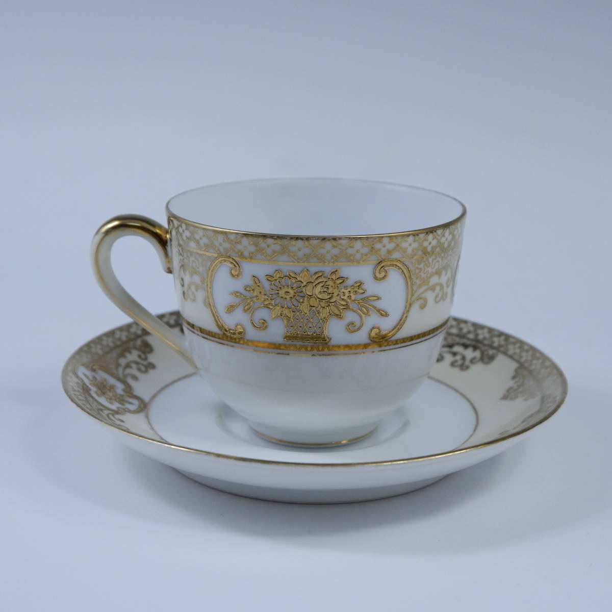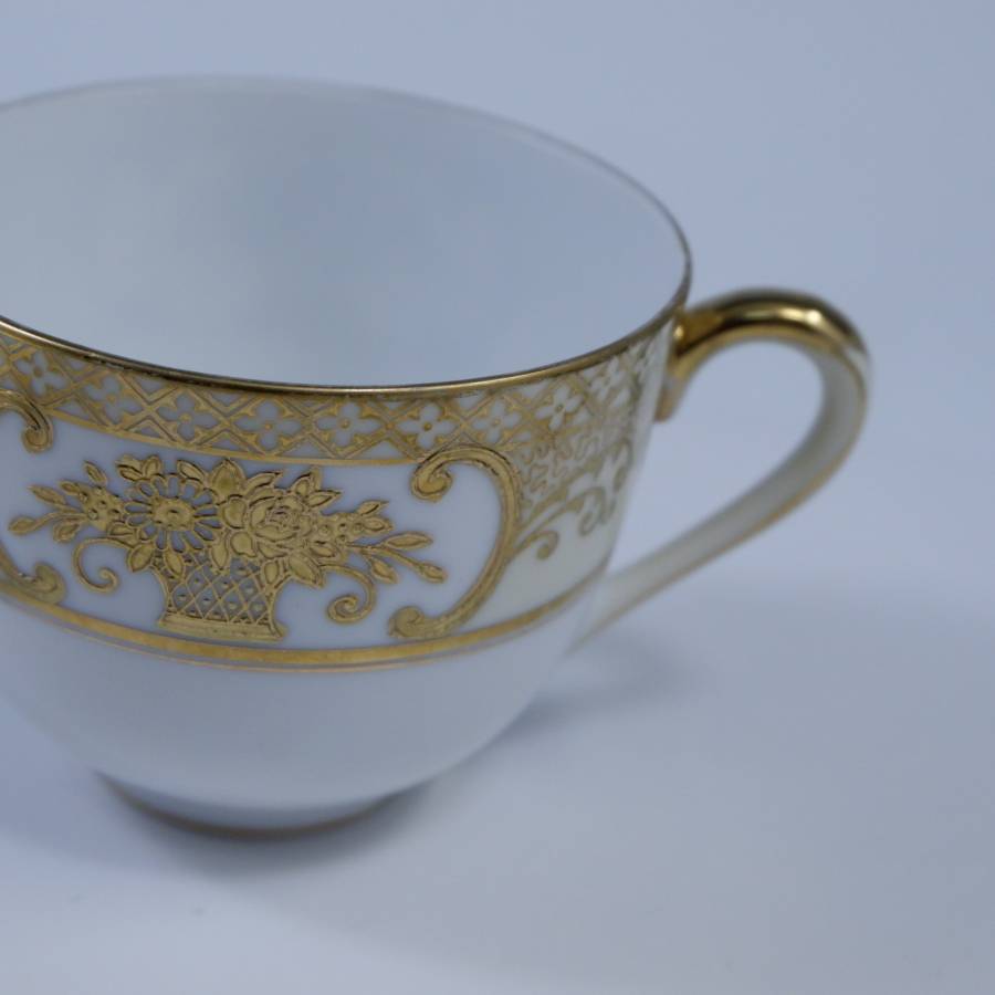 金彩がきれいなフラワーバスケット コーヒーカップ&ソーサーです。
