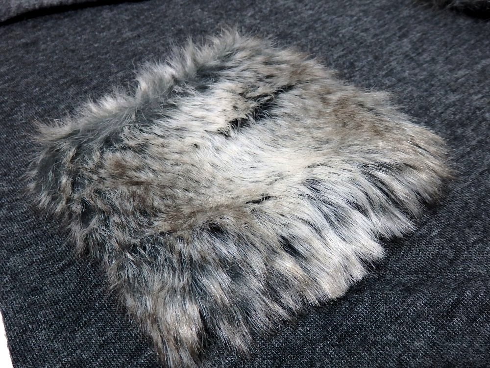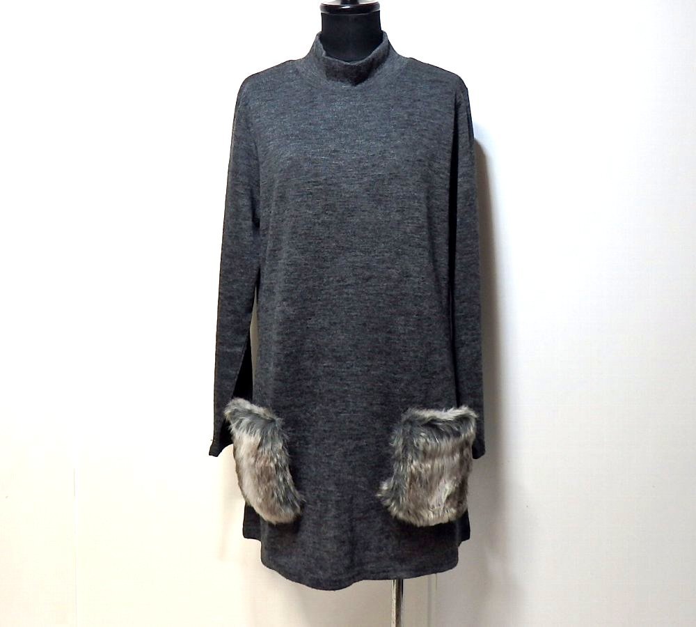 T【Menina メニーナ】ダークグレーにフェイクファ付ポケット・長袖・ハイネックチュニック・M~Lサイズ!