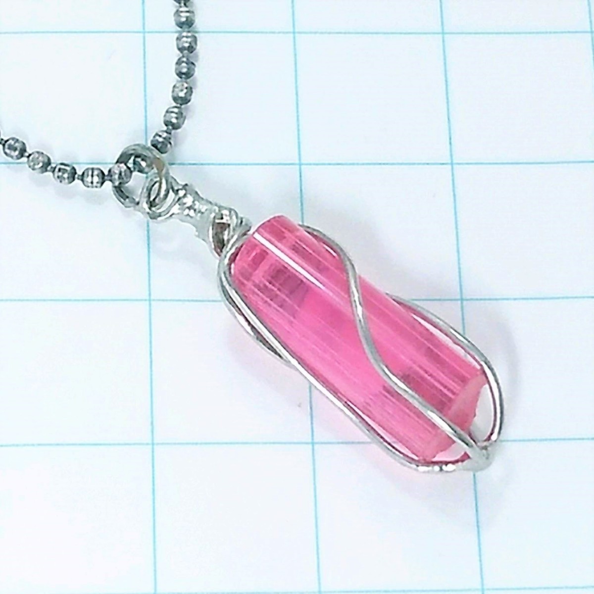送料無料)ビンテージ☆ピンクラインストーンペンダント☆チェーン 約40cm☆アンティークネックレス A05280