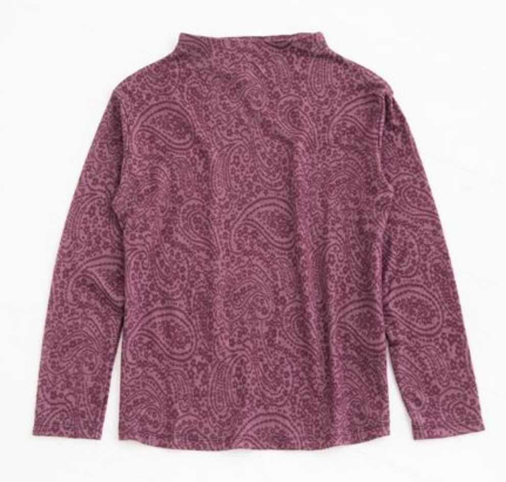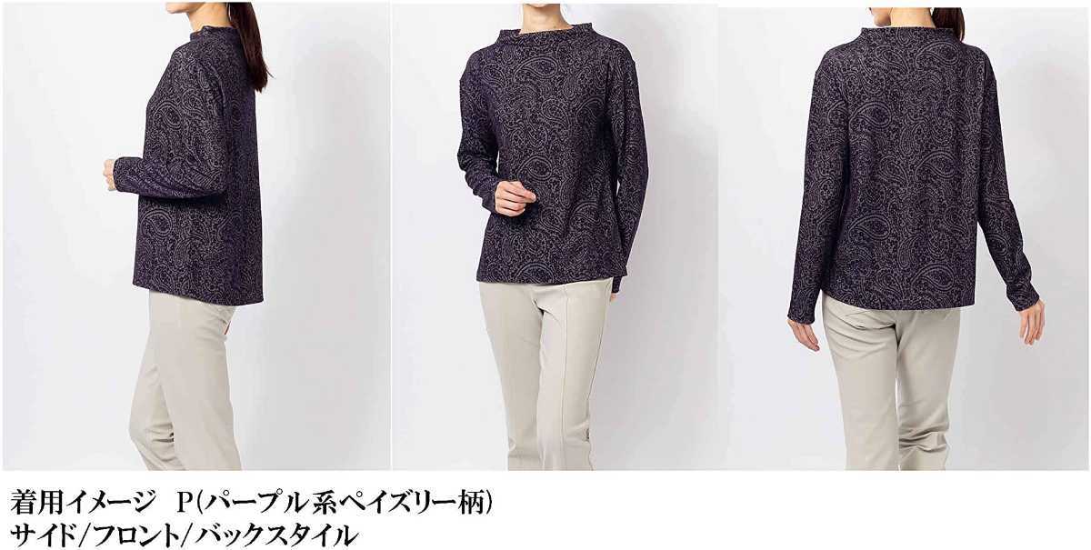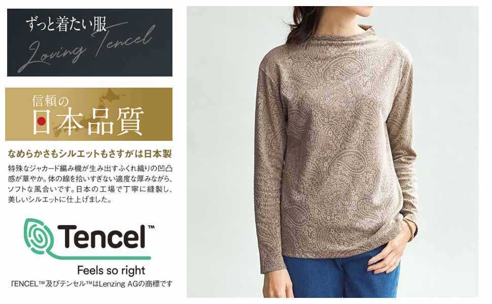 日本製 カットソー プルオーバー (テンセル(指定外繊維)95%、ポリウレタン5% (ジャカード))、Mサイズ(仕上げ寸法(約): バスト96cm、身丈60cm、肩幅45cm、袖丈53cm)、新品、未使用です。総柄製品の性質上、柄の出方には個体差があります。