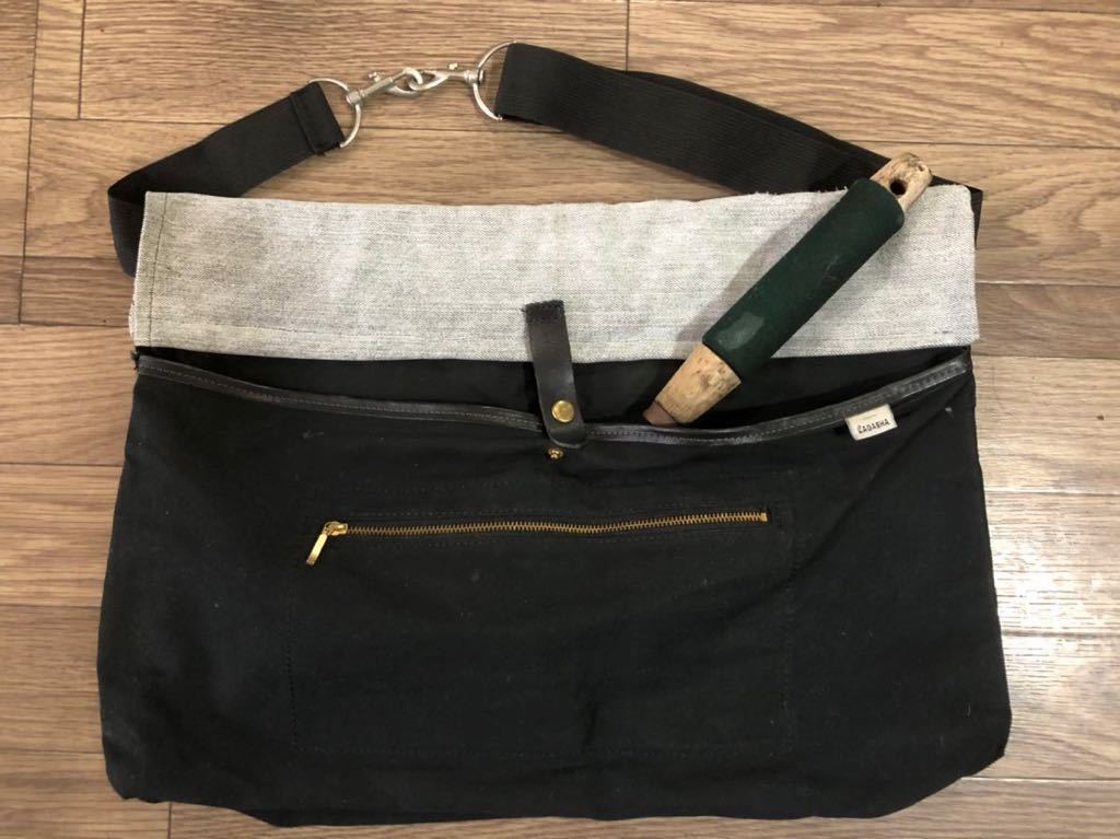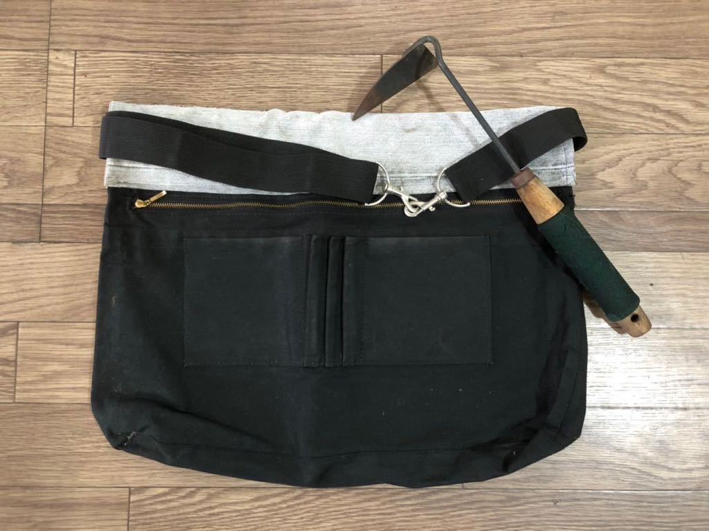 ウエストバッグとしての使い方では、サイズ的にカフェエプロンの役目にもなると思いますし、ガーデニングバッグとしてポケットに様々な園芸道具を入れたりすると便利だと思います。