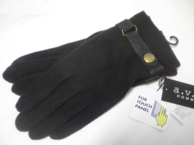 商品 情報 | ☆新品 ☆ロゴマーク入りです!!(モニター環境により色が写真と少し異なる場合があります) ☆カラー ブラック系 ☆素材 ウール・カシミヤ 附属部分 ベルト部 羊革 made in china ☆表記サイズ 23~24cm ☆平置きサイズ *手首~中指の先 約 24cm *手首の幅 約 10~10、5cm *中指の長さ 約 8、6cm ※参考程度に (測る場所により多少の誤差が生じます) ☆ブランド a.v.v アー・ヴェ・ヴェ (正規ライセンス商品) |