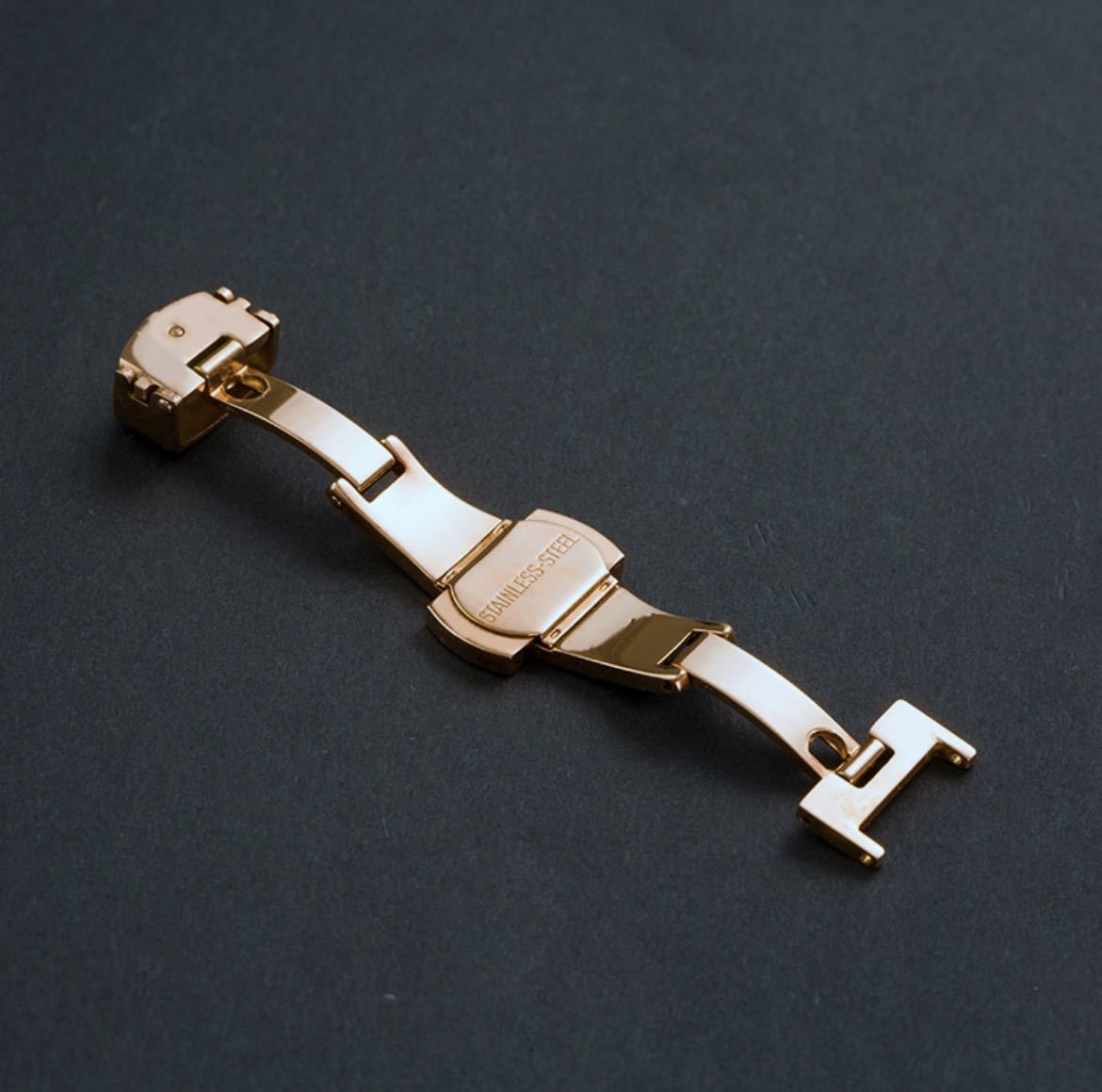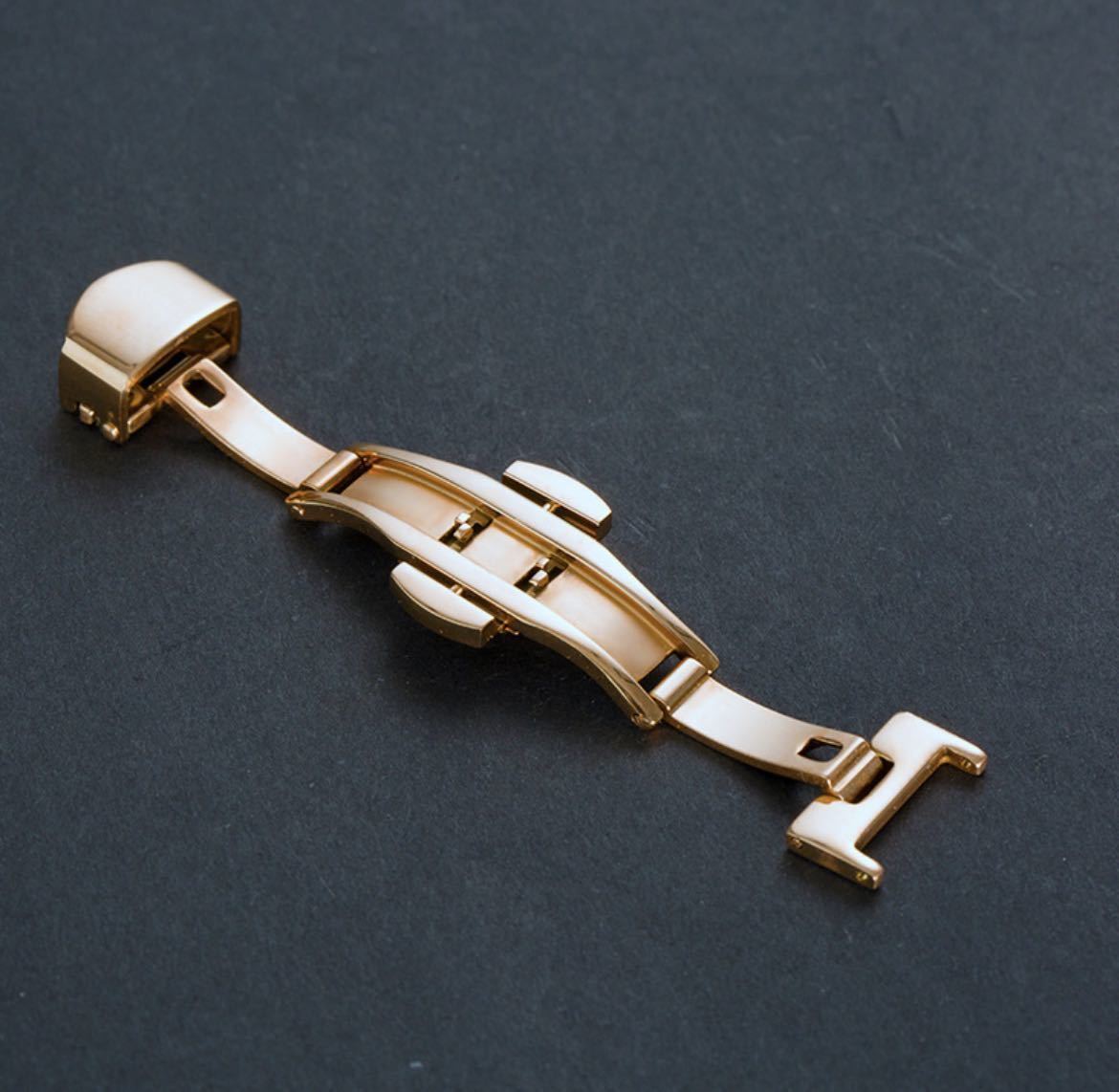 ワンプッシュ式で腕時計の付け外しが楽になる、ダブルフォールディング式のDバックルです。