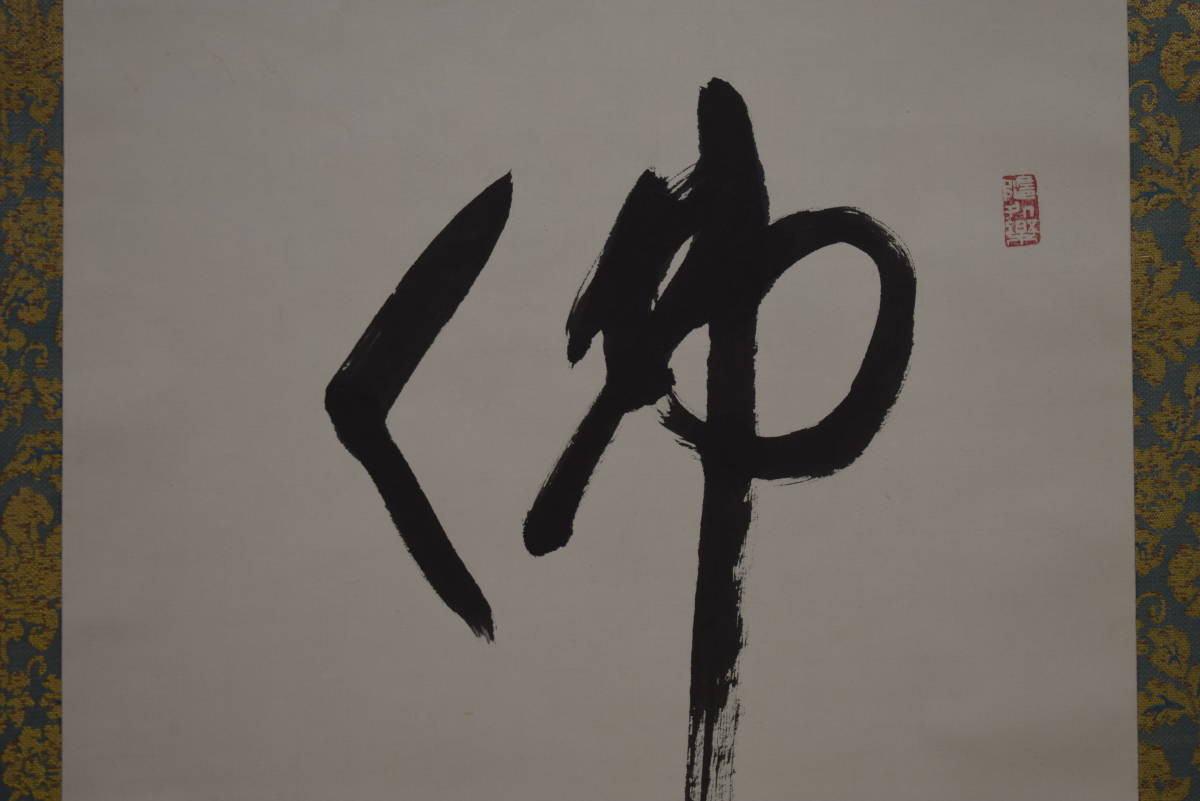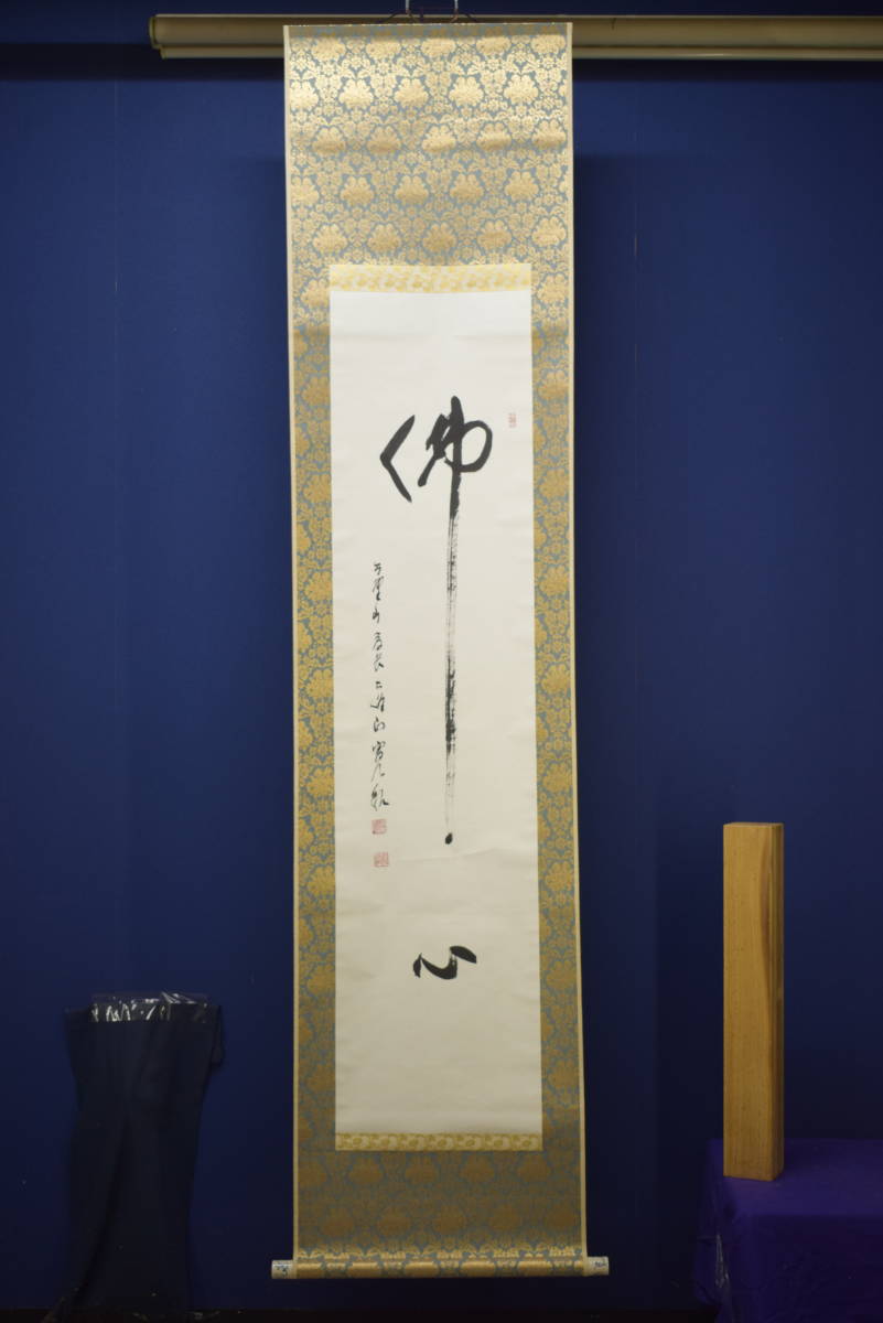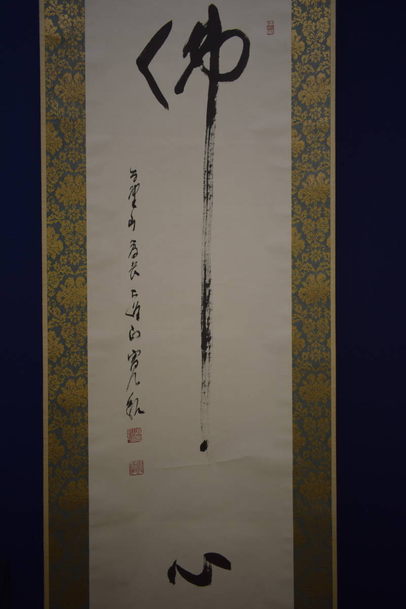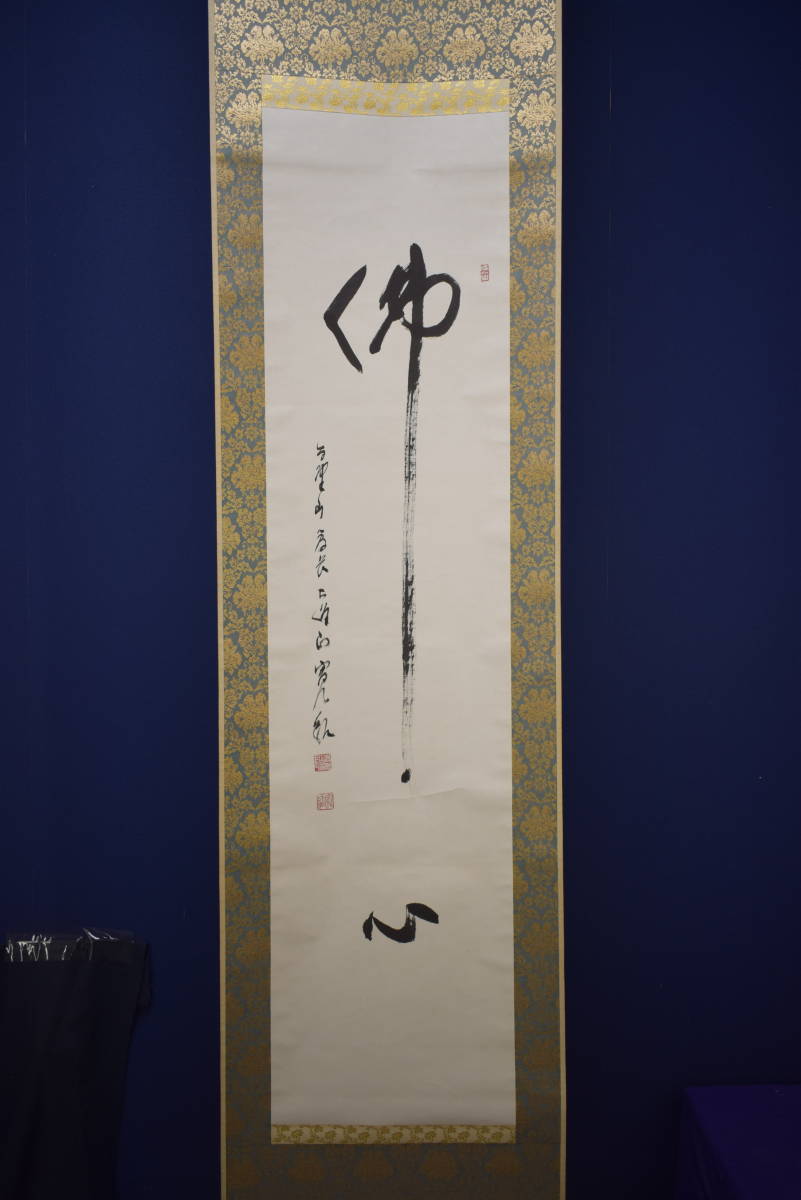 【真作】//高野山真言宗管長/高野山真言宗総本山金剛峯寺第406世座主/森寛紹/佛心/書/軸先焼物/布袋屋掛軸HI-860