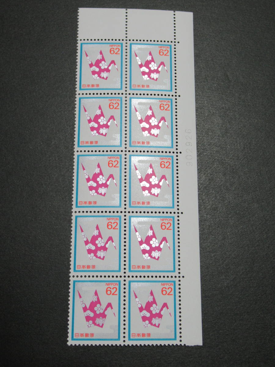 《慶弔切手各種》62円・折鶴・係数番号・未使用・10枚ブロック 《カタログ価 2500円》