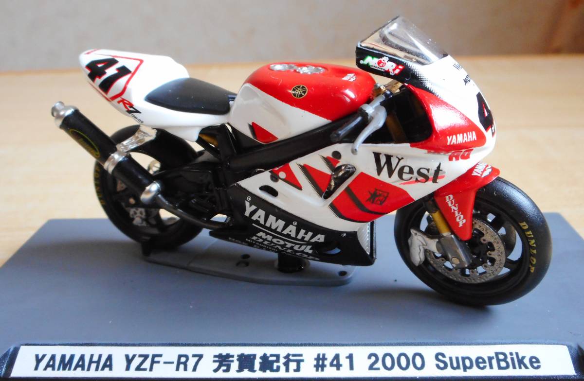 2000年の世界スーパーバイク選手権で芳賀紀行選手が駆ったヤマハのYZF-R7を1/24スケールで再現したミニカーです。