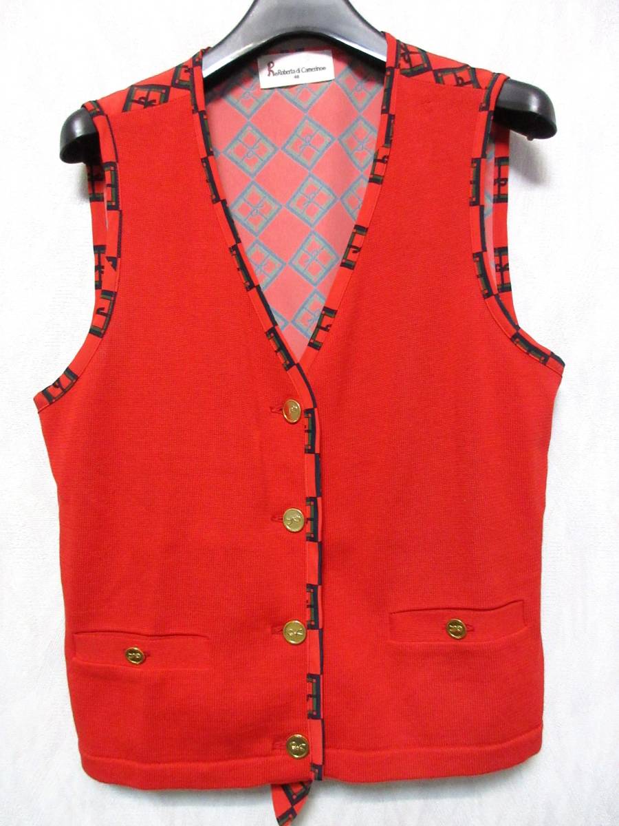 ロベルタディカメリーノ ROBERTA DI CAMERINO 切替 ニット ベスト 赤 40 亥1444