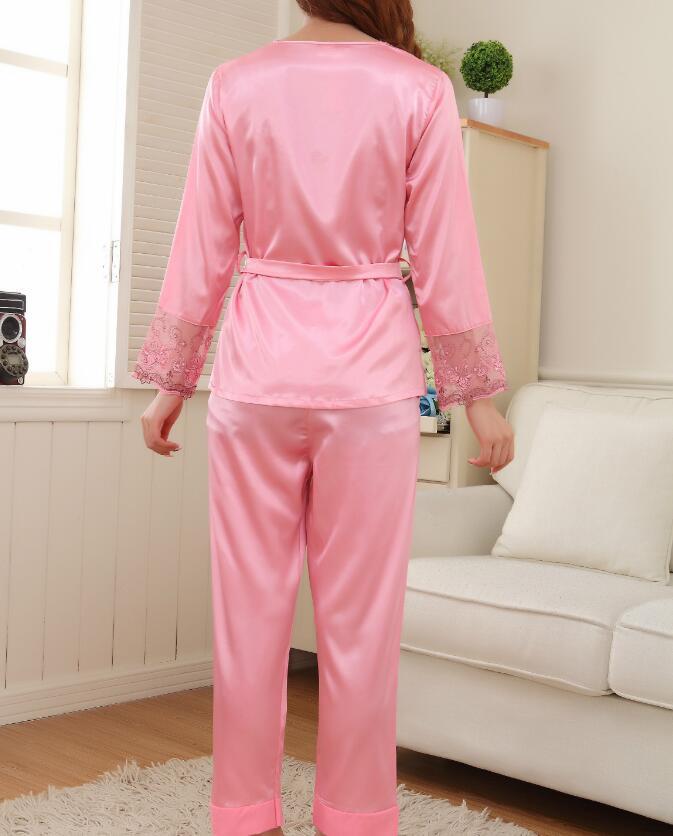 | ★高級シルク上下パジャマセット★刺繍★XL★ピンク★ |