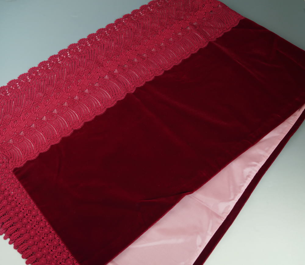 | 商品説明 | 赤紅色のベルベット地の端にレース刺繍が施された和装ショールです。カジュアルな装いにどうぞ。15,500円の値札が付いております。 ※おそらく未使用品ですが、若干の経年感があり、裏地に薄い黄変シミが点在しています。 |