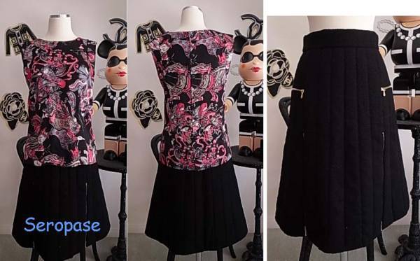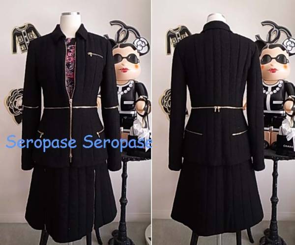 パリ上海コレクション人気の3点セットスーツ ♪ インナーの方38~40サイズ程度にブティックの方でお直ししております。ファスナー部分は飾りではなく実際に機能するのが面白い。さすがシャネル。
