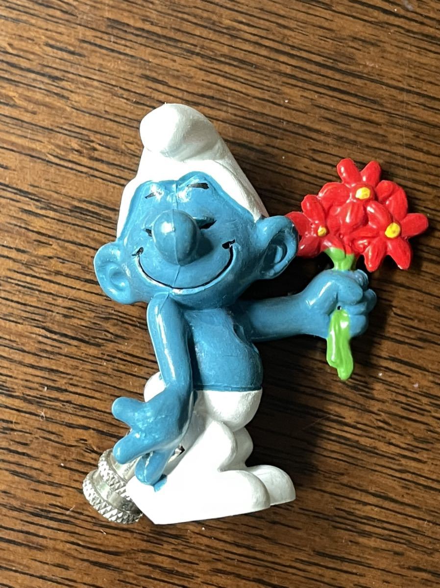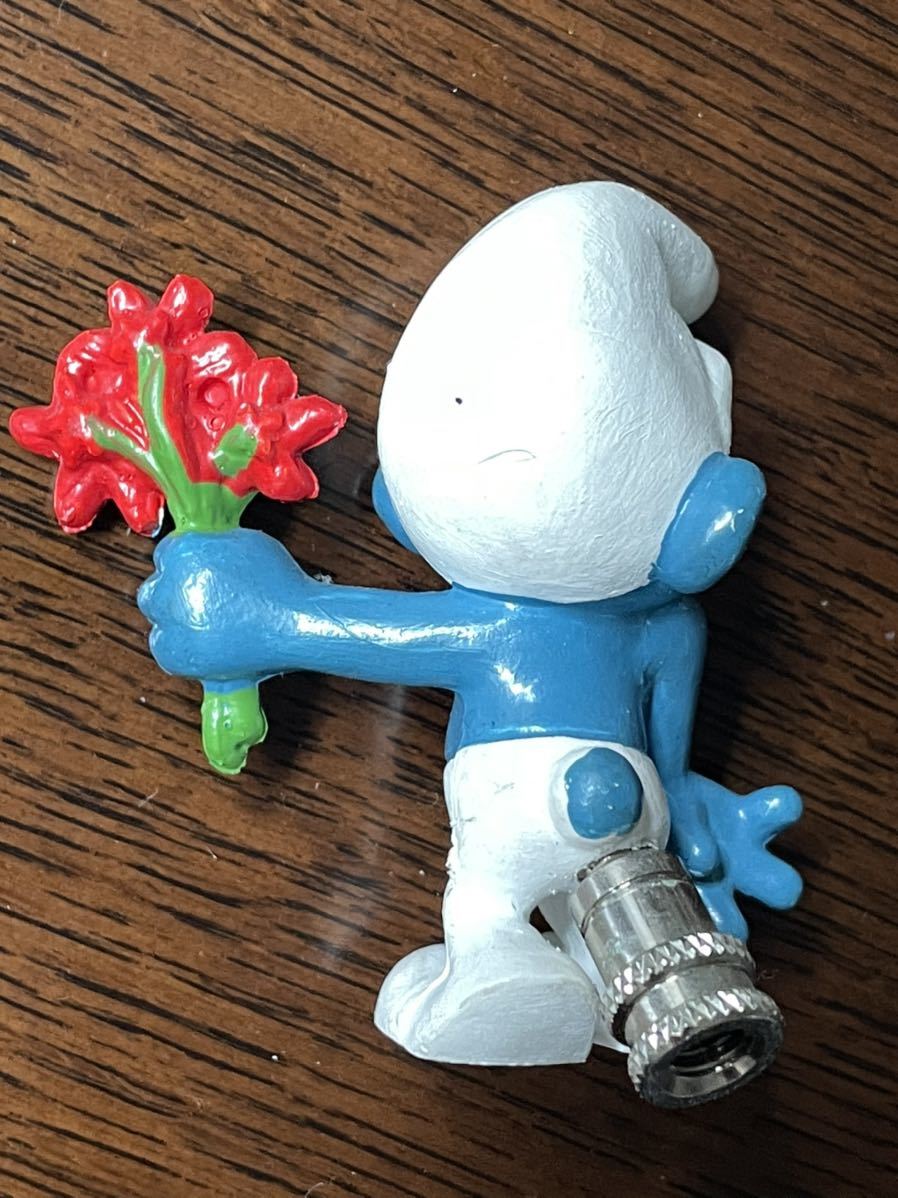 ○花束を持ったスマーフの、自転車タイヤバルブキャップ