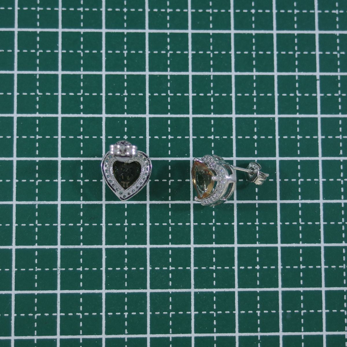 使われているメインのハート型のストーンについて、何らかの天然石だと海外の購入もとから伺っています。ただし、鑑定書等はなく、天然石だとしても処理の有無や詳しい情報は得られていません。そのため、こちらのお品物は出品カテゴリーを「人工宝石、ラインストーン」とさせていただいており、私どものも「人工宝石、ラインストーン」を用いたアクセサリーとしてお取り扱い申し上げております。予めご承知おきくださいませ。なお小さな透明のストーンは、人工宝石のキュービックジルコニアです。